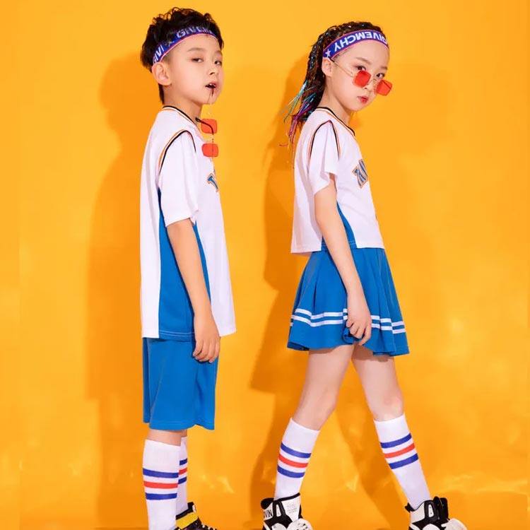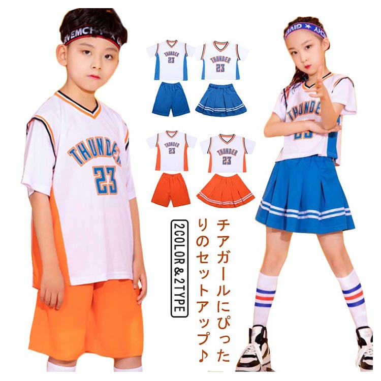 チアガール キッズ ダンス衣装 上下セット 子供用 チアガール衣装 チア リーディング ウェア チーム ユニフォーム チアダン 服 ウエストゴム へそ出し 女の子 男の子 ダンスウェア ダンス ハロウィン コスチュ-ム コスプレ衣装 応援 子供服