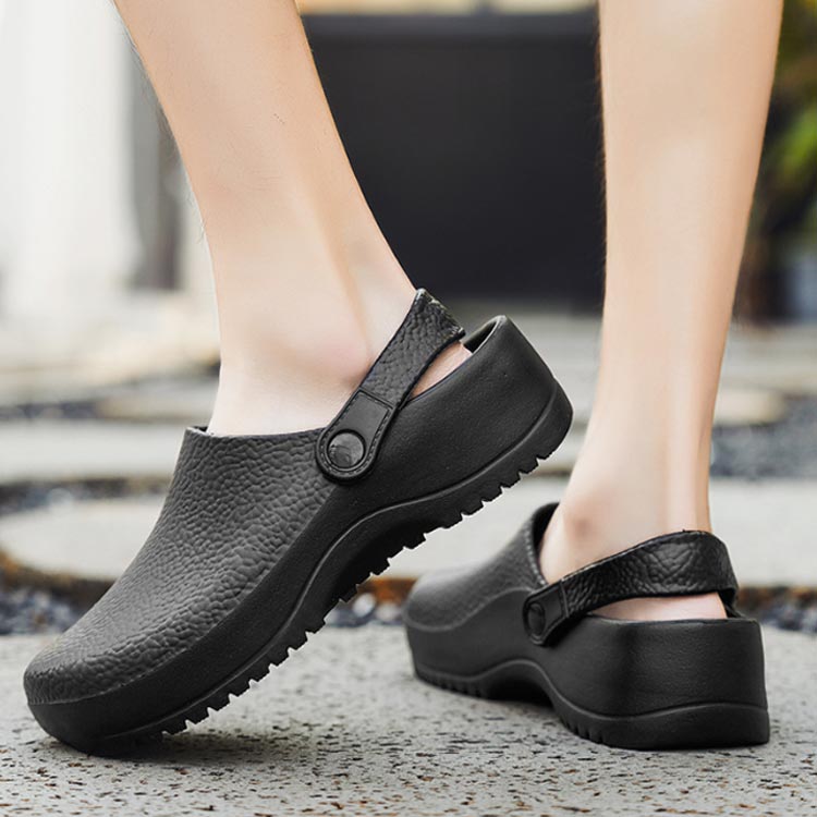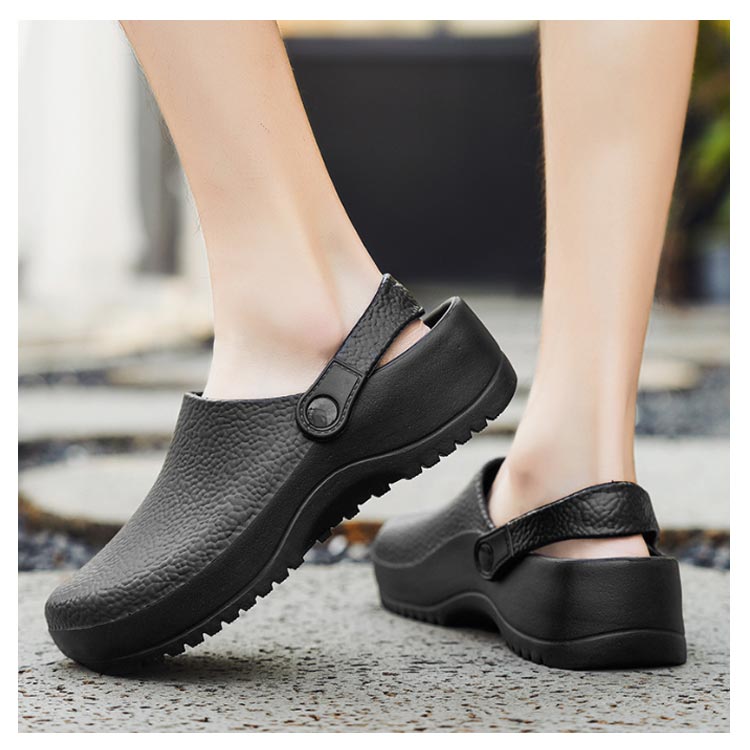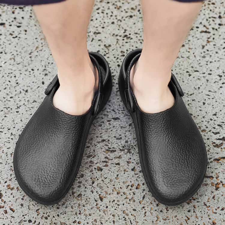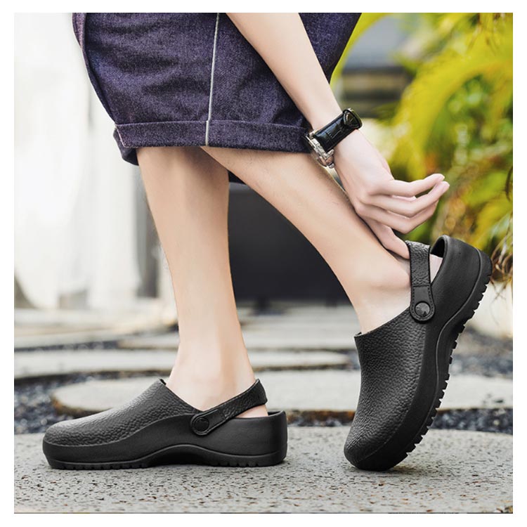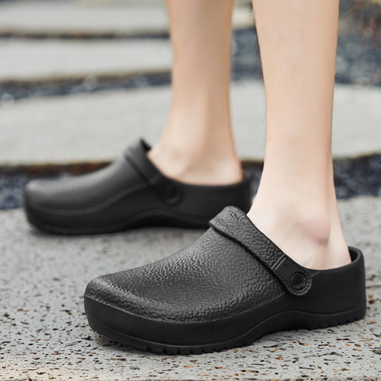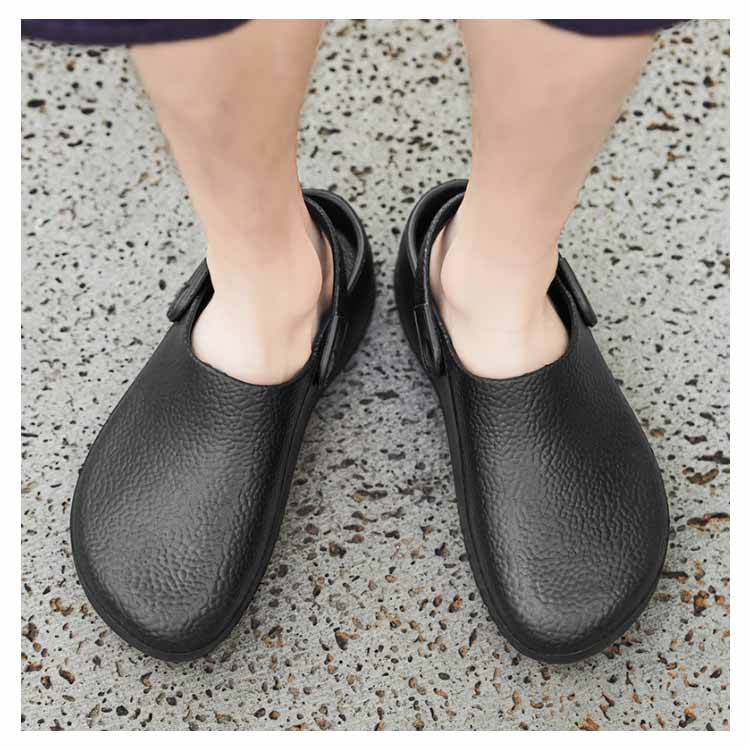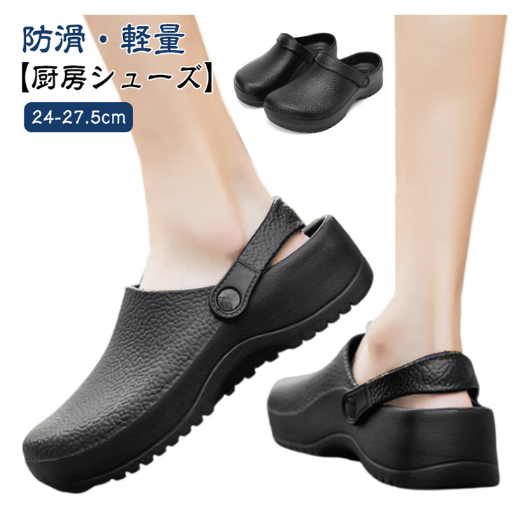 | 【厨房シューズ】【24-27.5cm】【防滑?軽量】2WAY 厨房やキッチン履き等にもオススメの、軽くて履きやすく疲れにくいサンダルです。 水やほこりが入らない穴なしタイプです 防水防油機能のあるEVA素材を採用しているため、安心して作業ができるので、厨房で大活躍。 2way着用:飲食店の厨房から座敷へ料理を運ぶ際の脱ぎ履きラクチン? 病院の先生?看護師さんにもおすすめ! 軽量性、耐久性に優れている。滑りにくいラバー底が付いている。 | |