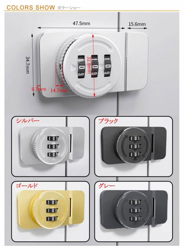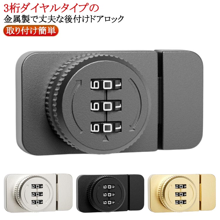 ドアロック 後付け 3桁ダイヤル式 スマートロック 3桁 ダイヤル式 部屋鍵後付け 引き戸 鍵 部屋 後付け 補助錠 落とし防止 室内ドア鍵 ロック 暗証番号ロック 引き出しロック 亜鉛合金製 耐久性 防犯 金具 防錆 南京錠 窓 鍵 扉 玄関 室内 ロッカー ポスト