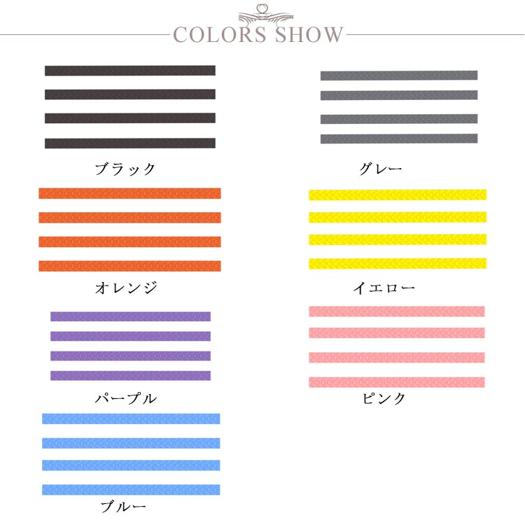 | 色 | ブラック グレー オレンジ イエロー パープル ピンク ブルー |