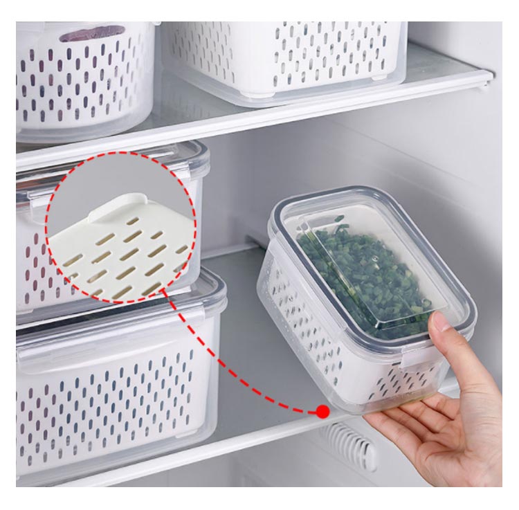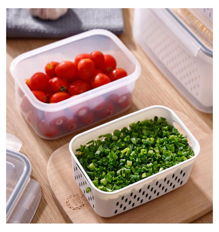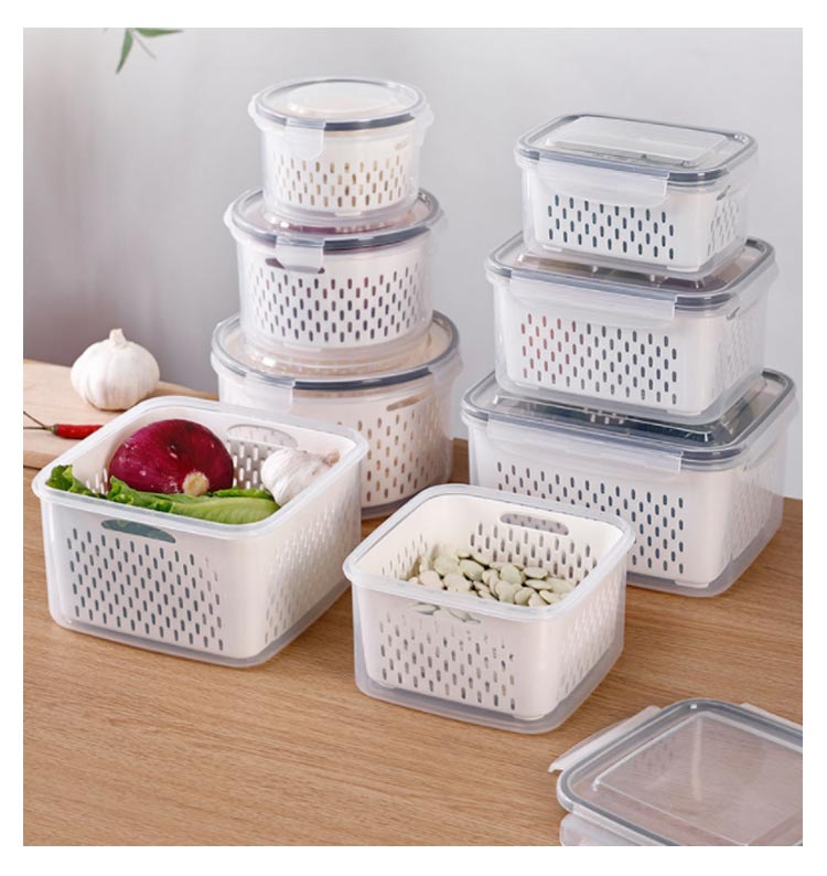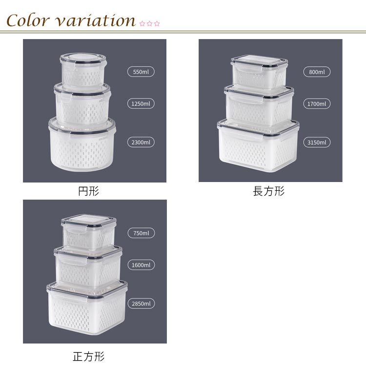【商品名】水切り付き保存容器【素材】 高品質の食品グレードの安全PP素材 【サイズ】サイズ表【特徴】大蒜、たまねぎ、生姜や玉米の粒・果物・キャベツなどを、洗って水切りしそのまま保存できる、便利な保存容器です。 水切り付き★水を素早く排出し、食品の保存時間を延長することができます。外層は水を貯蔵できます。食材から落ちる水滴から食材の鮮度を守ってくれます。蓋も付属しています。漏れにくく、効果的に臭いを防ぎ、食品を乾燥させてオリジナルに保つことができます。透明度が高い容器で中身がとてもわかりやすいです。積み重ねて使用できるので、収納場所も無駄なく使うことができます。