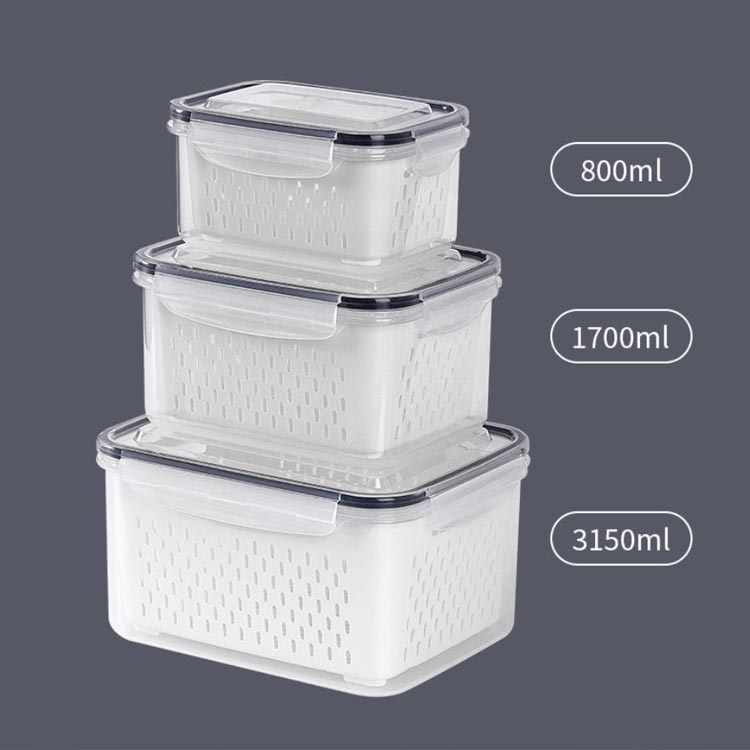 果物 フルーツ 野菜 密封キーパー 密閉ボックス 3個セット 冷蔵庫 食品 収納ボックス 蓋付き 野菜 保存容器 水切り付き 収納ケース ニンニク 大蒜 玉ねぎ 生姜 唐辛子 玉米の粒 収納ケース 密封 透明 食材 収納ボックス 二層 排水 ミニ保存容器 省スペース 野菜 保存