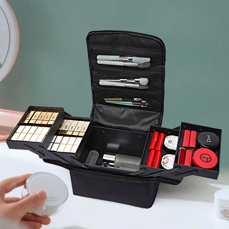 全4色 メイクボックス 収納 かわいい ナイロン 防水 バニティバッグ バニティポーチ イク道具 化粧品 化粧ポーチ ジェルネイル ネイル コスメ メイク 用品 バニティ バッグ ケース 大容量 ボックス 黒 コスメ収納 コスメボックス ポーチ