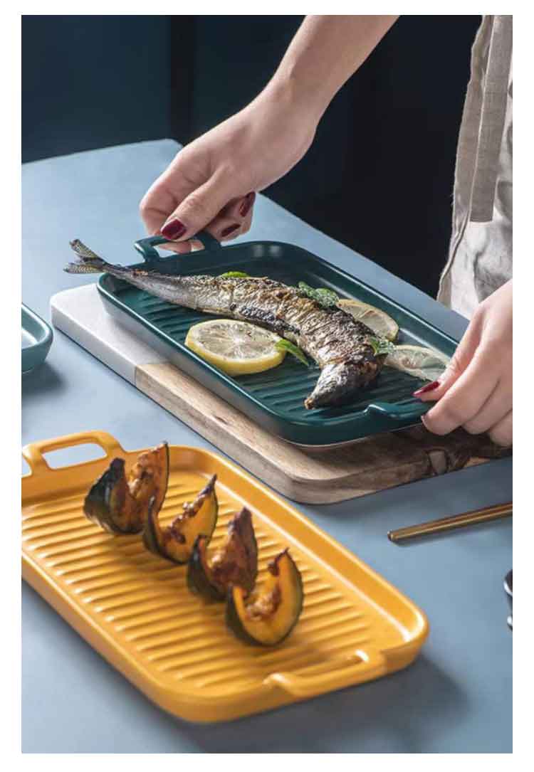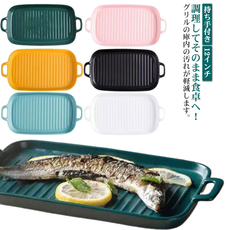 グリルパン 魚焼きグリル トレー 北欧 オーブン料理 プレート ロースター グラタン皿 電子レンジ 耐熱皿 セラミック グリルプレート 持ち手付き グリル専用焼き魚トレー グリル用 魚焼きトレー グリルプレート 魚焼きグリル 秋刀魚 さんま 鮭 鯖 さば 唐揚げ ギフト 送料無料