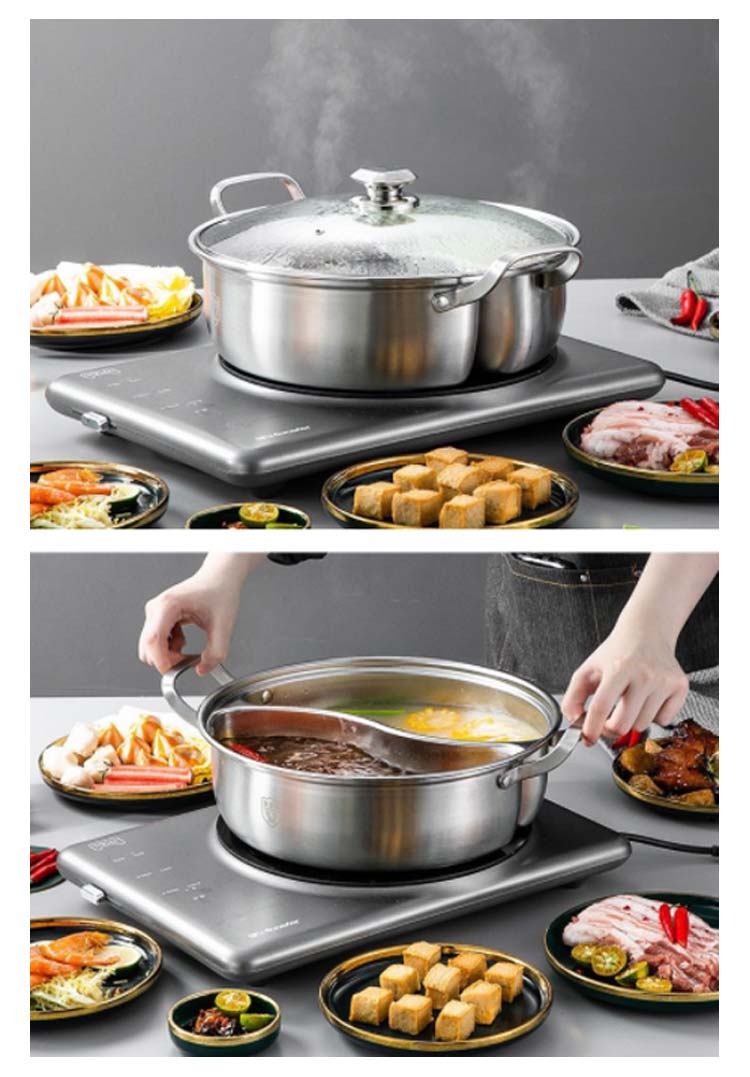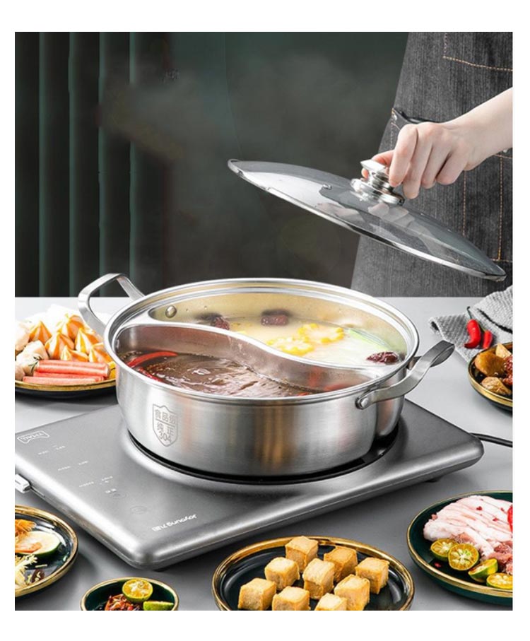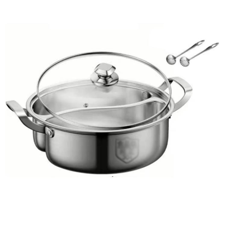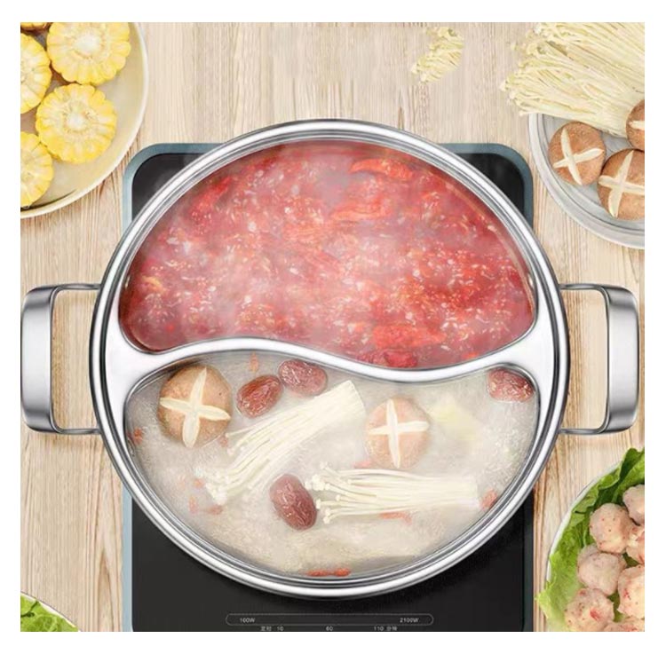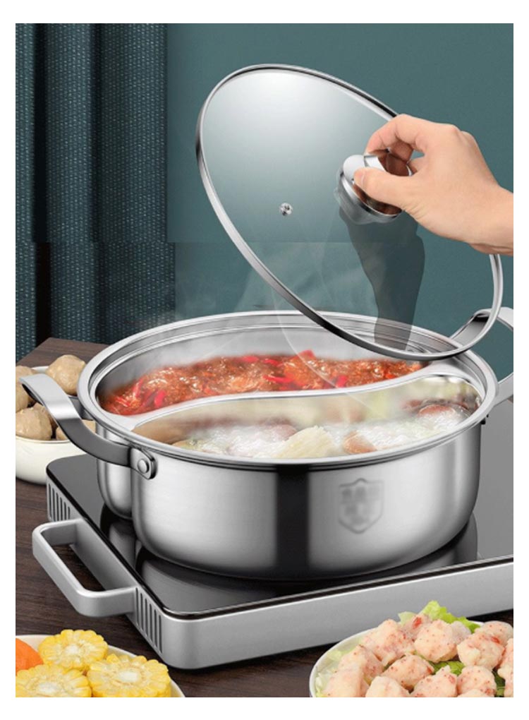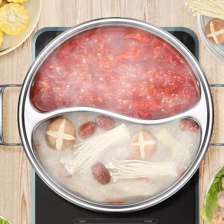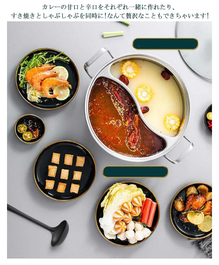 仕切り鍋 二色鍋 火鍋用 鍋 中華鍋 二味鍋 直火対応 IH対応 30cm 28cm 32cm レードル付き しゃぶしゃぶ鍋 二食鍋 ガラス蓋 鍋パーティー 味分け 2槽火鍋 キッチン用品 コンロ 調理器具 ステンレス製