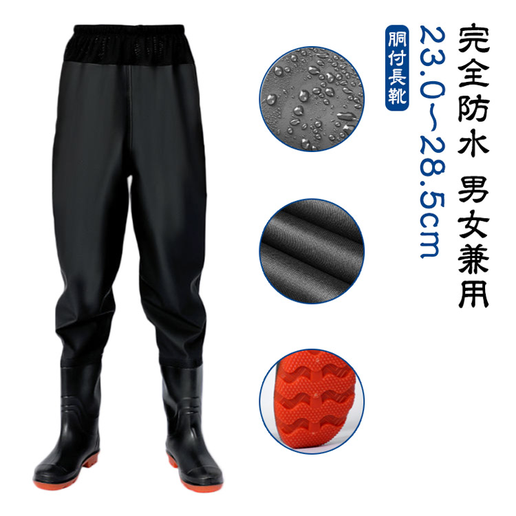 完全防水男女兼用23.0~28.5cm腰下までしか浸からないなら脱ぎ履きのしやすいウエストタイプがおすすめ。普通のウェーダーよりも着脱しやすく、ヒップウエダーよりも扱いやすいです。履き心地の良いPVCで作られて、柔らかくて通気性・防汚性、耐久性に優れたこだわりの仕上がり!ウエストゴムと調節可能な紐付きでウエストにフィット。ソールはグリップのいい深溝のラジアル底で、船上でも使え、スパイクとは違って音も少なく、床を傷つける事もありません。女性も男性も着れる小さいサイズから大きいサイズまで揃った12サイズ。土砂災害、土砂崩れ、台風、河川の氾濫、洪水など、万一の災害時の復興やボランティアの際に。防災の備えとして。