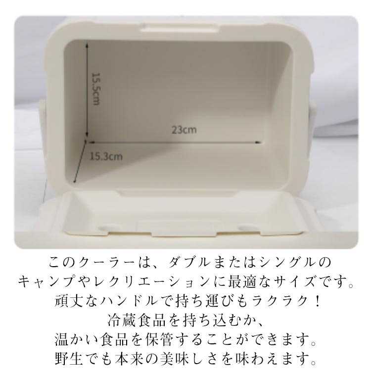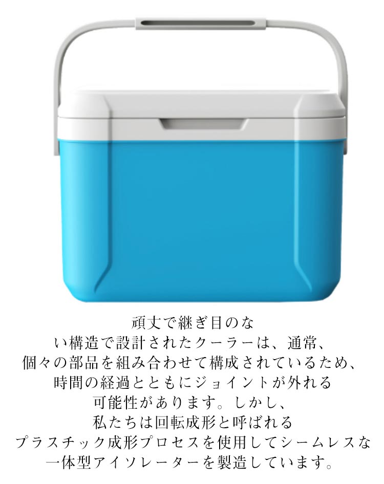 肉厚の断熱材を圧入し、蓋裏のパッキンを極めて緻密にすることで、外気の影響を受けにくく保冷力が高いクーラーボックスです。常に衛生的な容器または包装に保管してください。頑丈で継ぎ目のない構造で設計されたクーラーは、通常、個々の部品を組み合わせて構成されているため、時間の経過とともにジョイントが外れる可能性があります。しかし、私たちは回転成形と呼ばれるプラスチック成形プロセスを使用してシームレスな一体型アイソレーターを製造しています。耐久性に優れ、密閉性に優れ!保温性と保冷力に優れた、真夏でも安心して使える高級保冷ボックスです。この製造方法により、クーラーに強度が加わり、頑丈で断熱性の高いボックスが作成されます。このクーラーは、ダブルまたはシングルのキャンプやレクリエーションに最適なサイズです。頑丈なハンドルで持ち運びもラクラク!冷蔵食品を持ち込むか、温かい食品を保管することができます。野生でも本来の美味しさを味わえます。