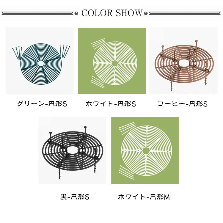 | 色 | グリーン-円形S ホワイト-円形S コーヒー-円形S 黒-円形S ホワイト-円形M コーヒー-円形M 黒-円形M グリーン-円形M コーヒー-正方形M 黒-正方形M |