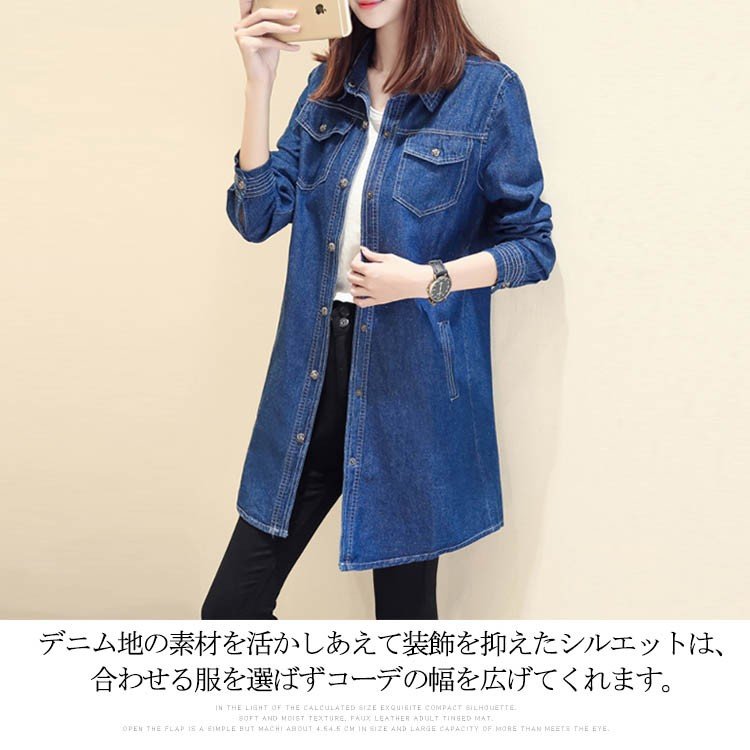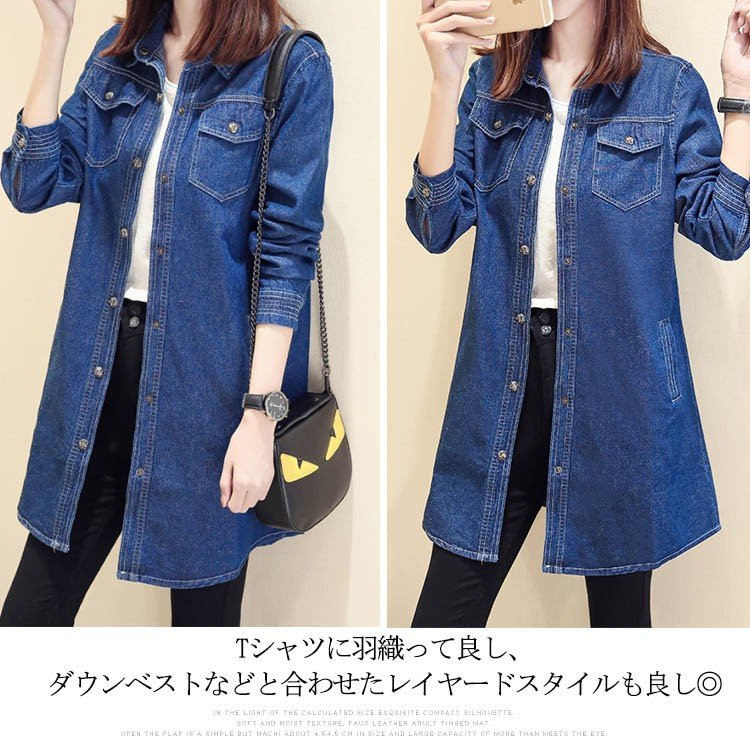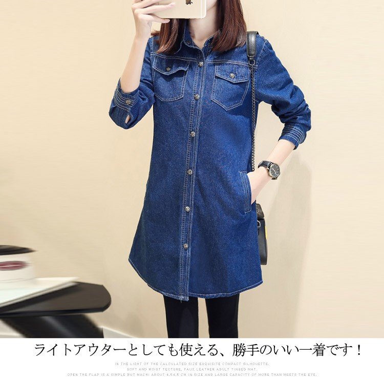 春秋カジュアルstyleの鉄板!デニムアウター ダンガリーシャツ レディース デニムロングシャツ デニムシャツ デニム シャツ 羽織物 ロング丈 長袖 秋服 秋物 ライトアウター コート