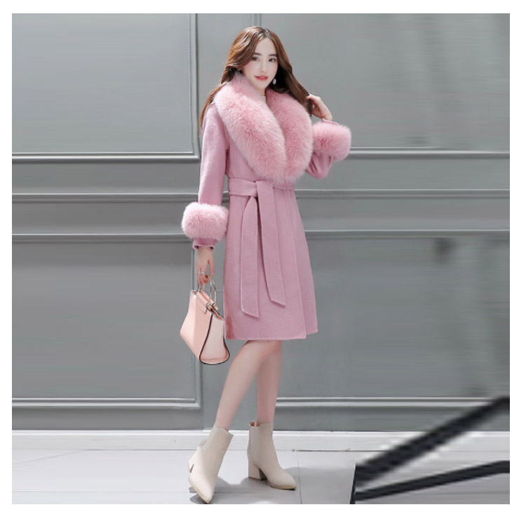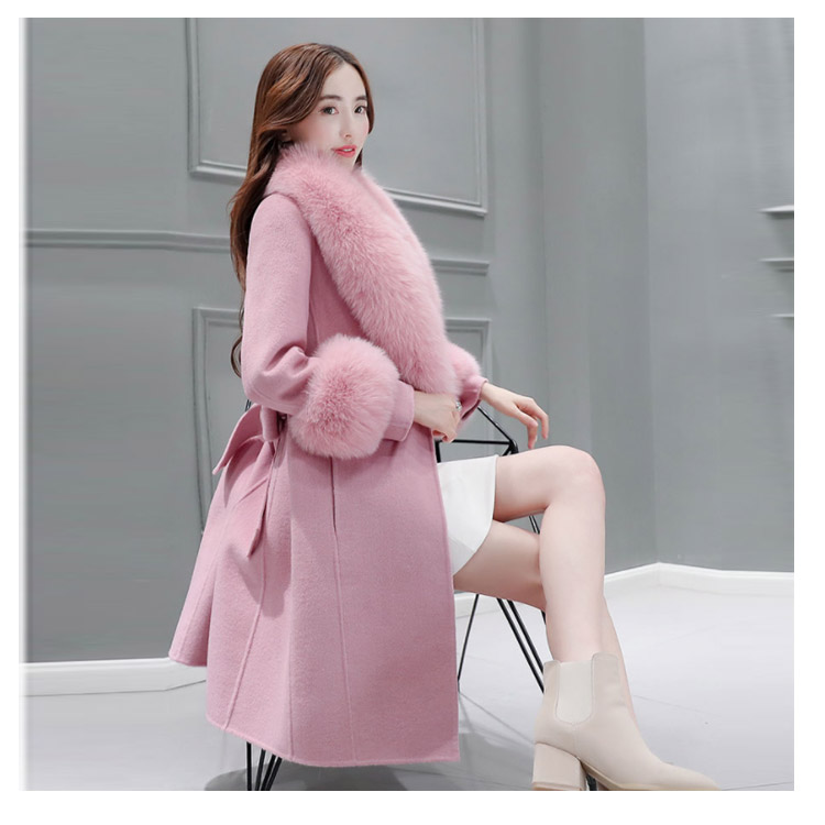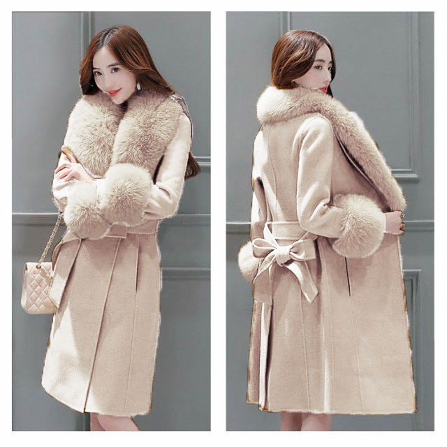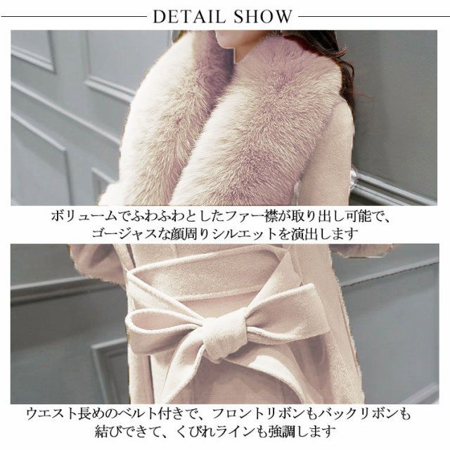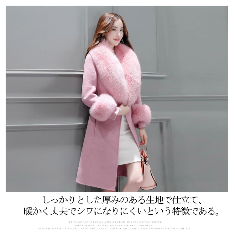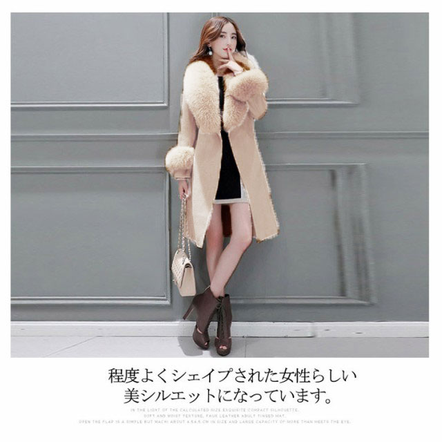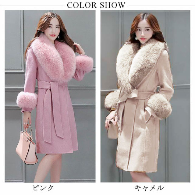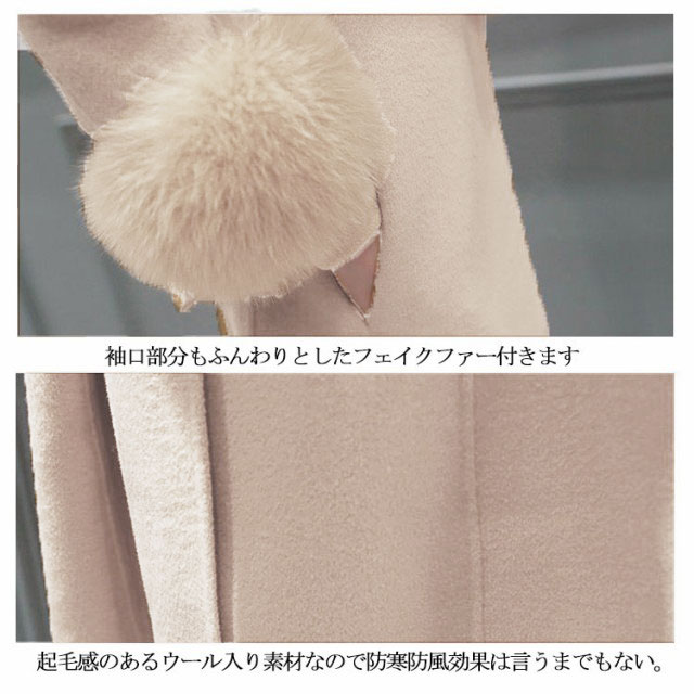 襟も袖口も上品なフェイクファー付き!Aラインコート ウールコート カシミア ロングコート トレンチコート ベルト付き レディースコート アウター 秋冬 厚手 ファーコート フェイクファー 上品 高級 通勤