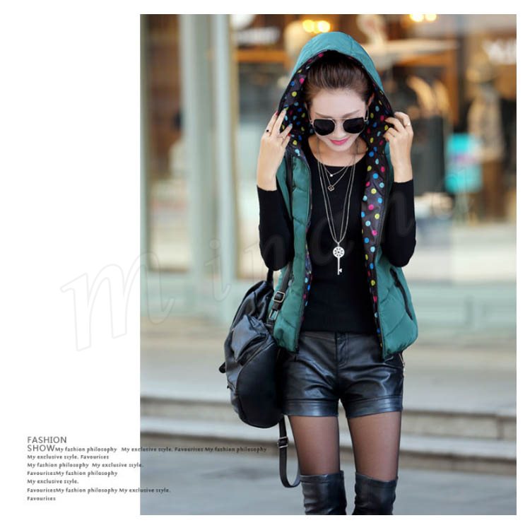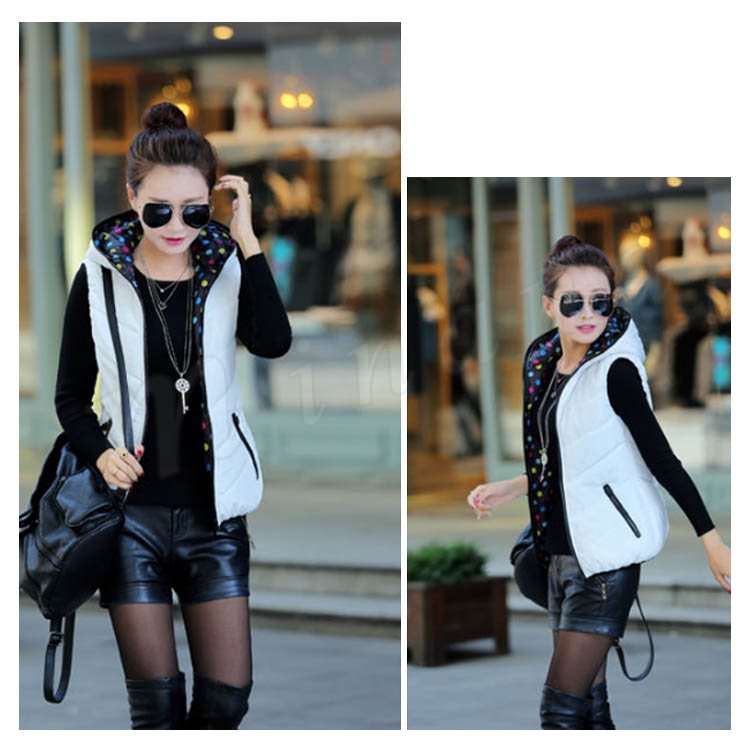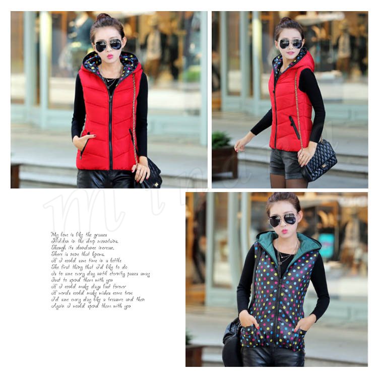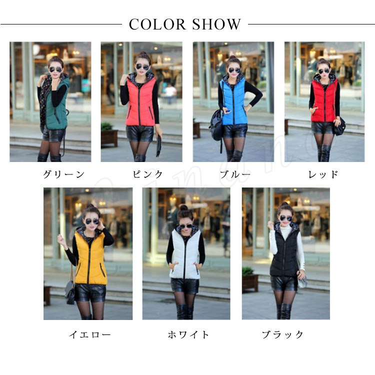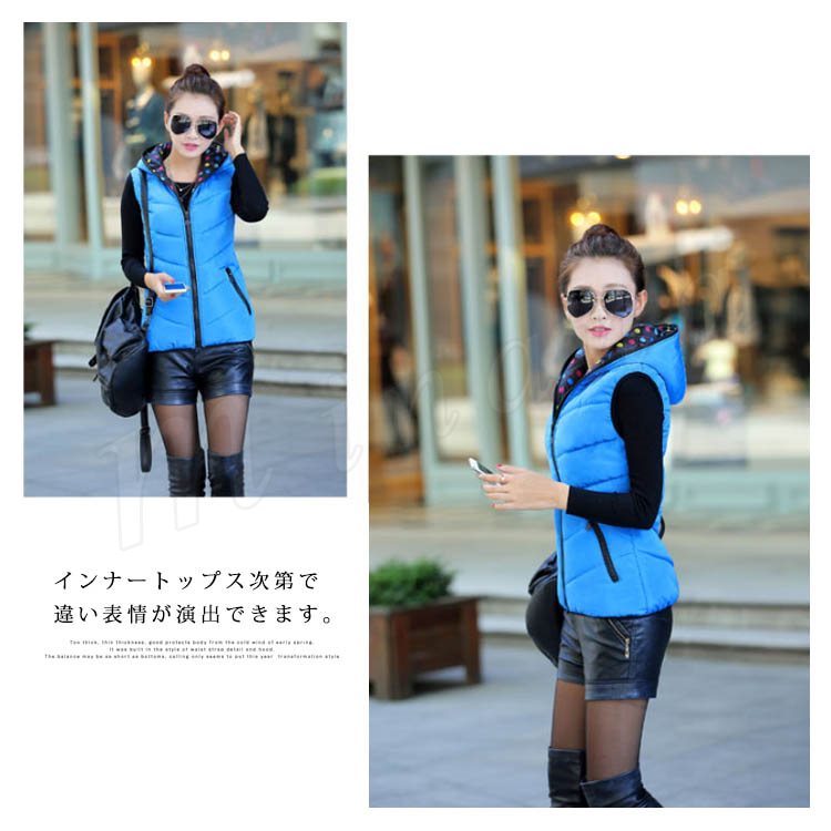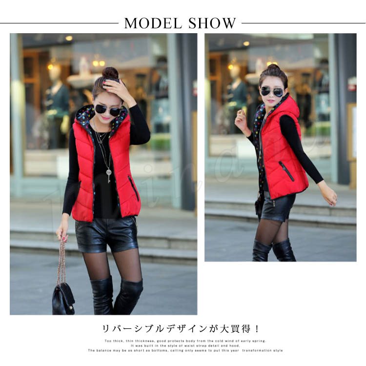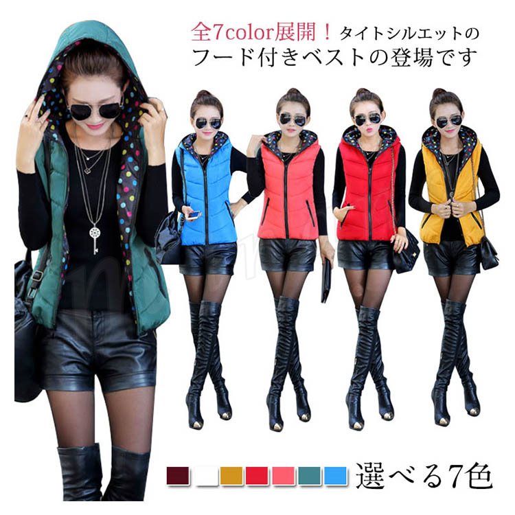 全7color!M-3XL リバーシブル ベスト フード付きベスト レディース アウター ジャケット 秋冬 水玉 カジュアル タイト 中綿入り おしゃ