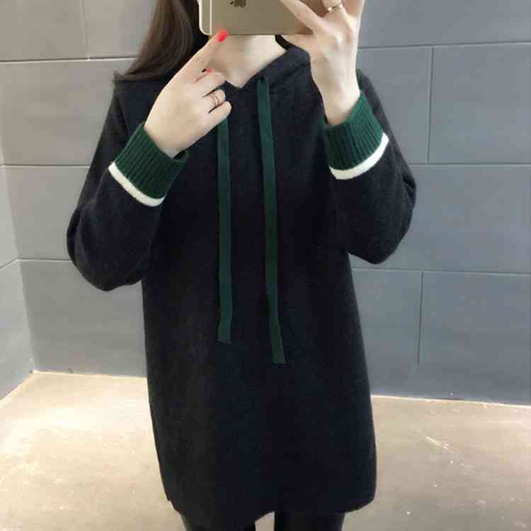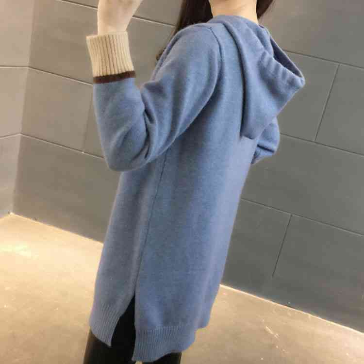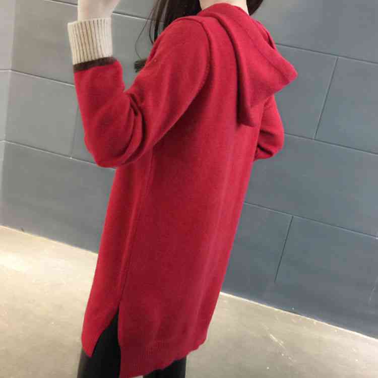 全5color!サイドスリット入り ニットパーカー レディース フード付き カジュアル ニットトップス ニット パーカー プルオーバー 秋 チュニック 可愛い
