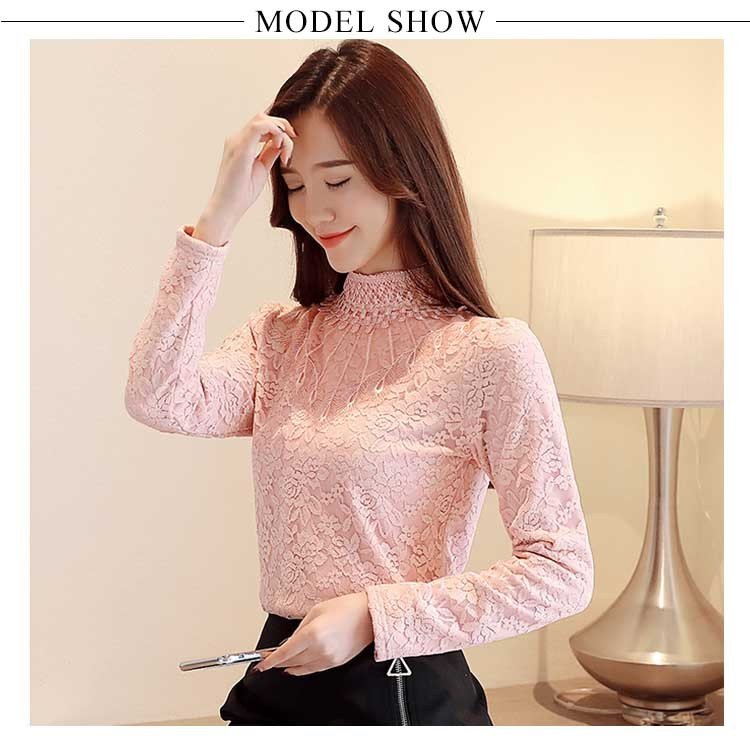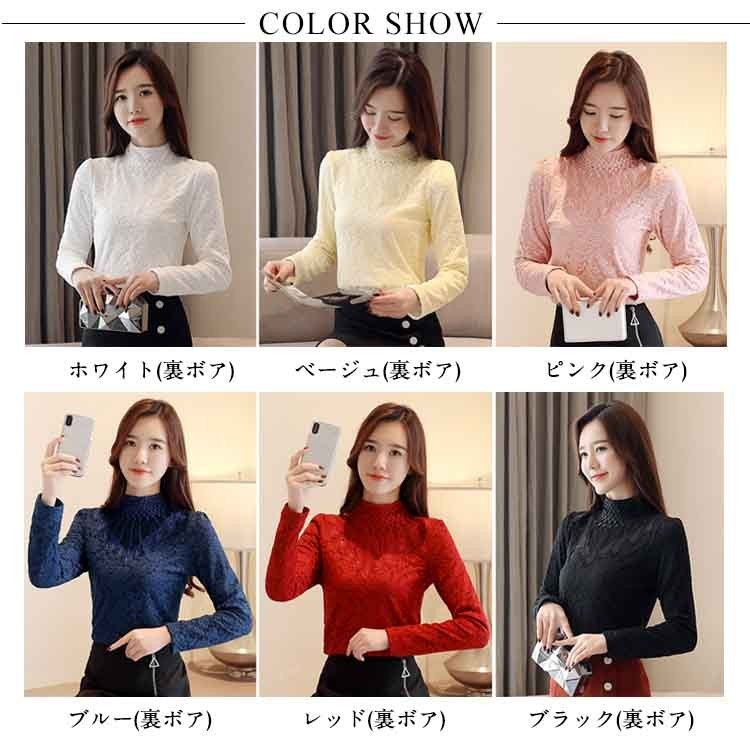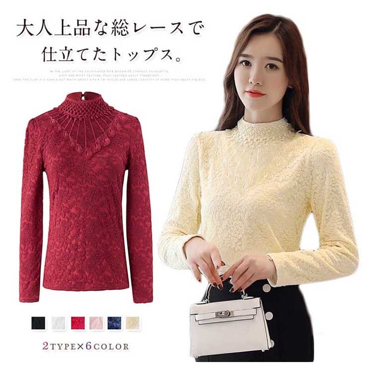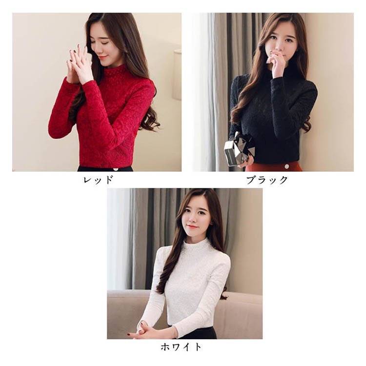 S-5XLサイズ!ハイネック レースブラウス 総レーストップス シャツ ブラウス 裏起毛ブラウス 立ち襟 レース トップス 秋冬 防寒 インナー 大きサイズ 大人 女性 上品