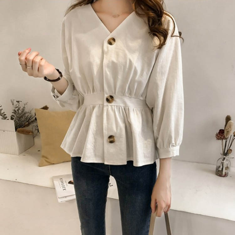 メール便送料無料 ブラウス トップス シャツ 春 レディース 長袖 バルーン袖ブラウス 全3色 M-4XL Vネック OL おしゃれ 可愛い