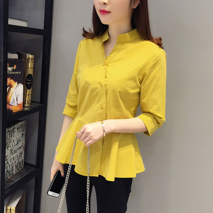 フレアブラウス Vネックトップス ブラウス レディース 7分袖 vネックシャツ 無地 カジュアル 通勤 オフィス 20代 30代 40代 50代