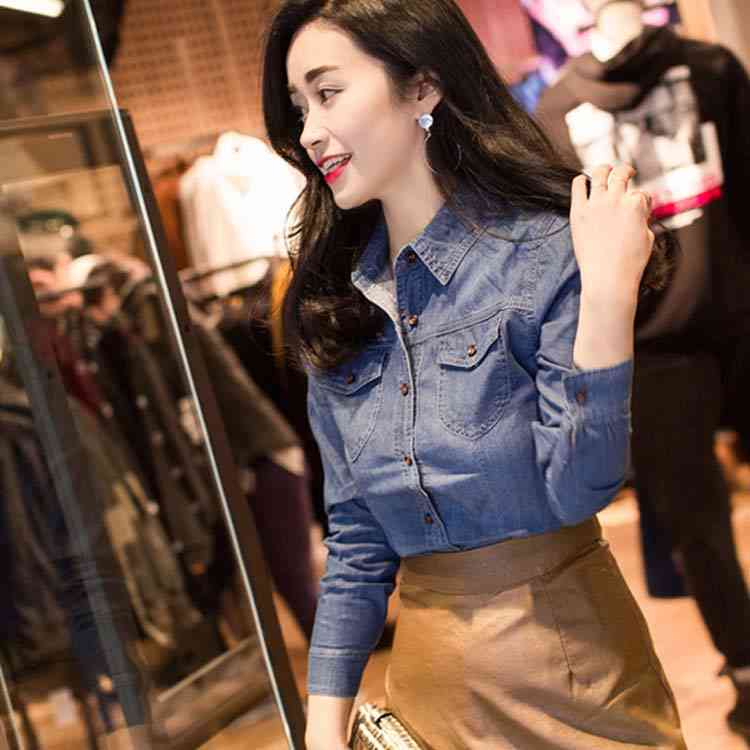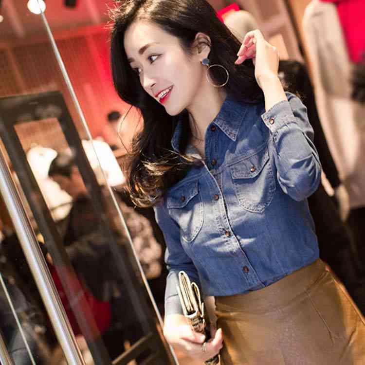 シャツ デニムシャツ レディース トップス 長袖 春秋 カジュアル 女子