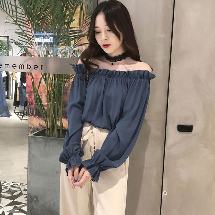 オフショルダーブラウス シフォンブラウス きれいめブラウス トップス レディース 長袖 無地 おしゃれ 春夏 キャンディースリーブ