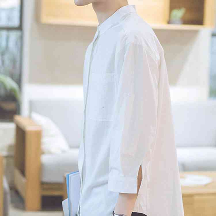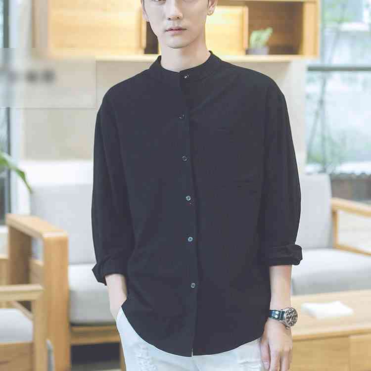 立て襟 シャツ メンズ スタンドネック 長袖シャツ 7分袖 シャツ 無地 カジュアルシャツ 長袖 メンズシャツ コットンシャツ 綿シャツ 無地 シャツ 爽やか カジュアル