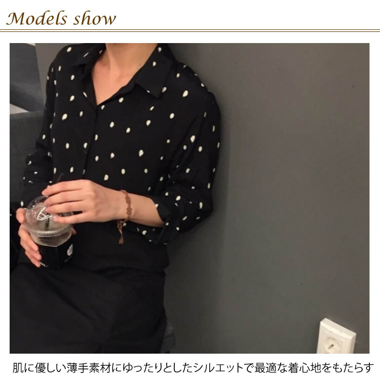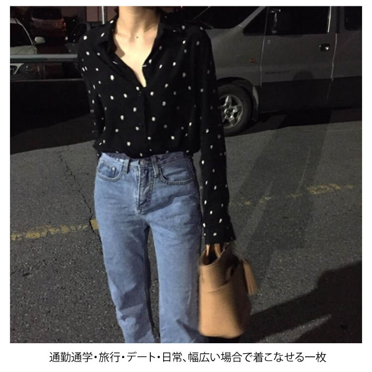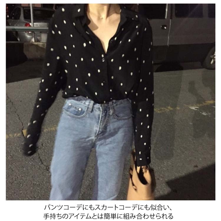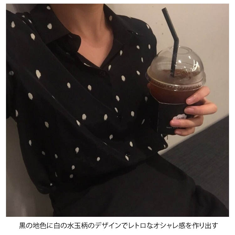 | レディース用の長袖シャツが登場 肌に優しい薄手素材にゆったりとしたシルエットで最適な着心地をもたらす 黒の地色に白の水玉柄のデザインでレトロなオシャレ感を作り出す パンツコーデにもスカートコーデにも似合い、手持ちのアイテムとは簡単に組み合わせられる 通勤通学・旅行・デート・日常、幅広い場合で着こなせる一枚 | |
