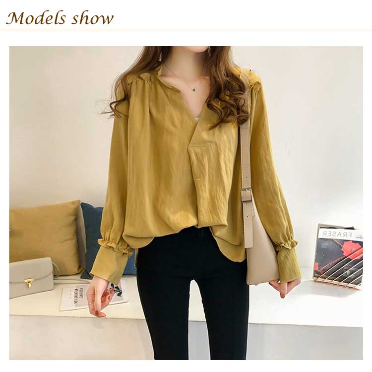 | レディース用の長袖シャツが登場 肌に優しい薄手素材にゆったりとしたシルエットで最適な着心地 襟と袖部分にフリル付きのデザインでレトロ感もキュートさも倍増 ナチュラルなVネックは綺麗な鎖骨部分を強調、とても気質アップ 雰囲気異なる三つの色チョイスもレトロ感が溢れて上品感たっぷり パンツコーデにもスカートコーデにも似合い、春秋ファッションに必ず大活躍の一枚 | |