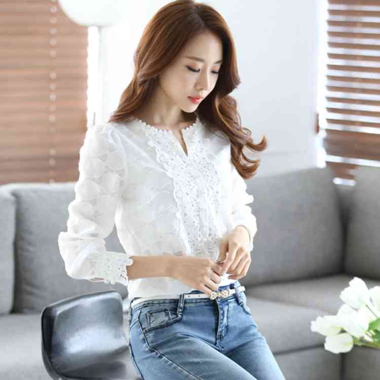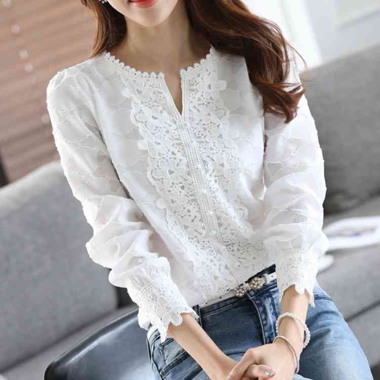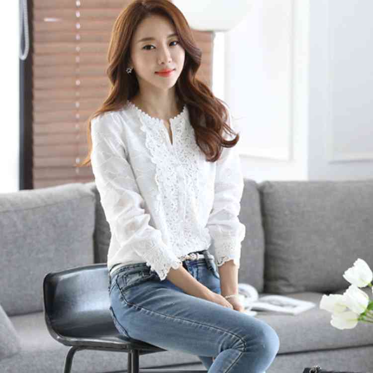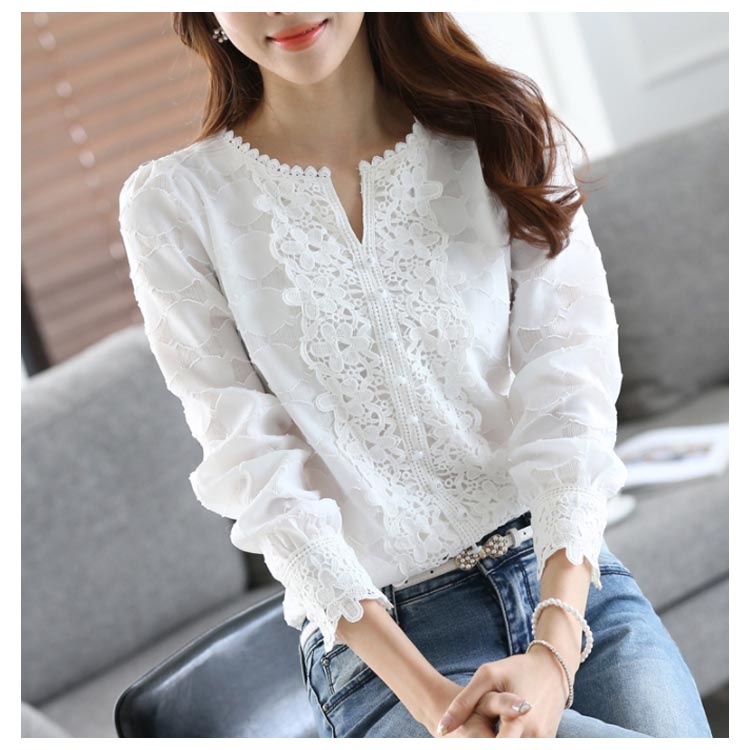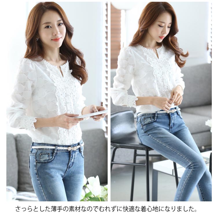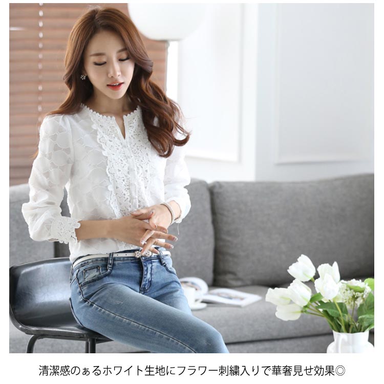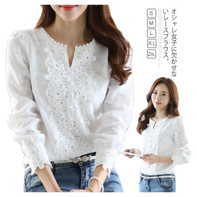 S-XXLサイズ!レースブラウス レース ブラウス トップス 白シャツ レディース シャツブラウス レース 刺繍 おしゃれ 女性 可愛い 春 秋 長袖
