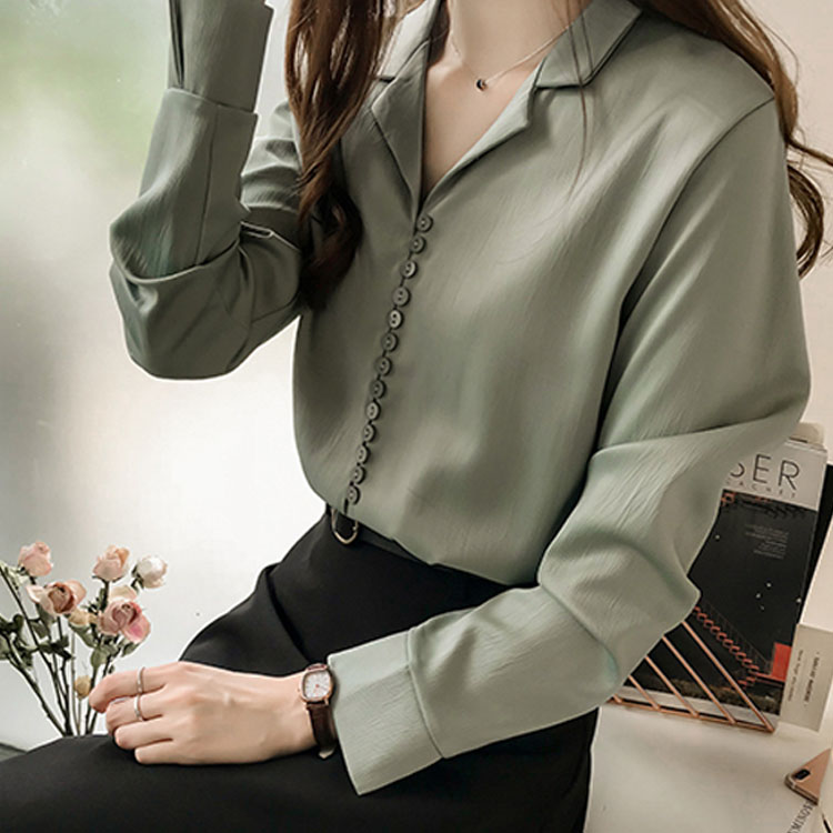 [3色展開]シャツ ブラウス レディース オフィス サテンとろみブラウス サテン 春夏 トップス 薄手 長袖 女子