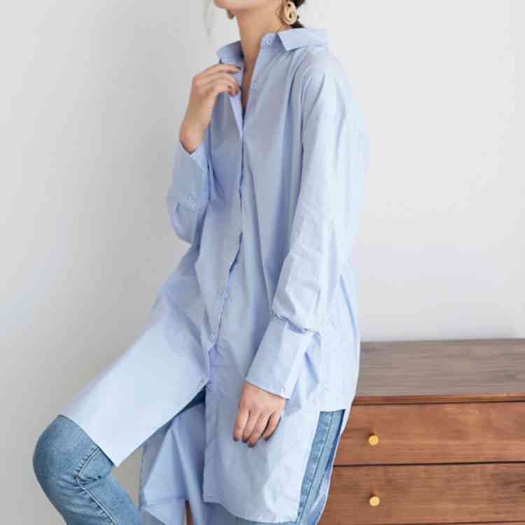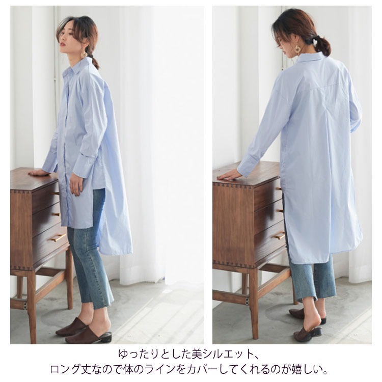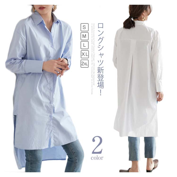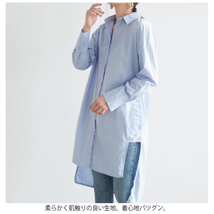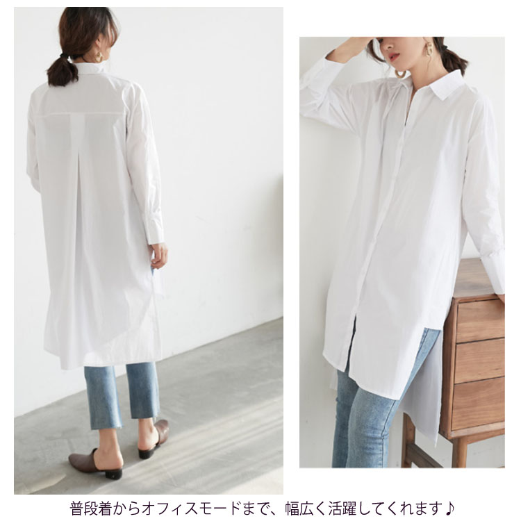 ロングシャツ レディース 無地 長袖 すっきり ゆったり カジュアル ブラウス トップス 春 夏 秋 2019春夏新作