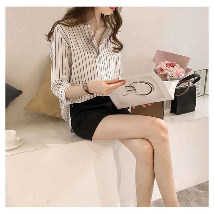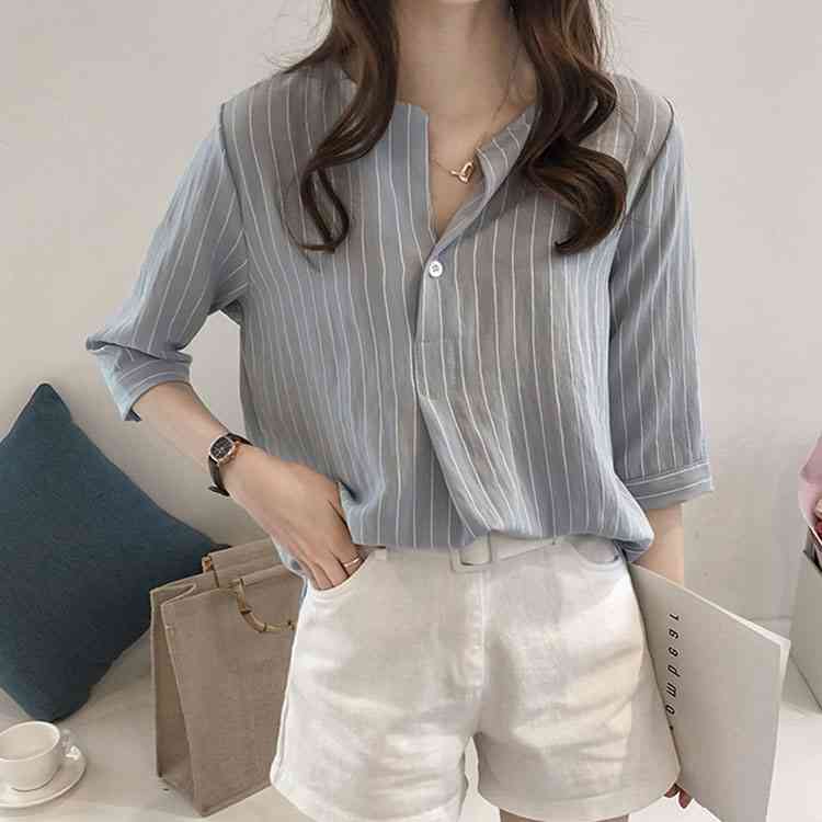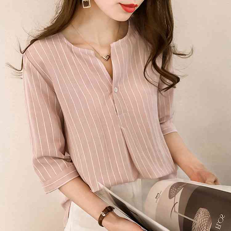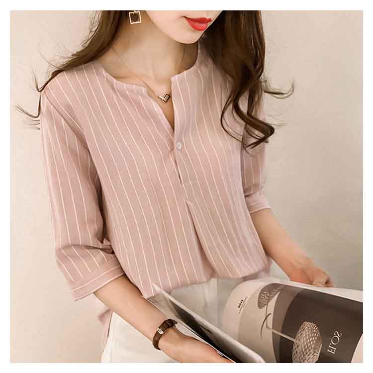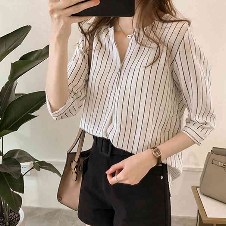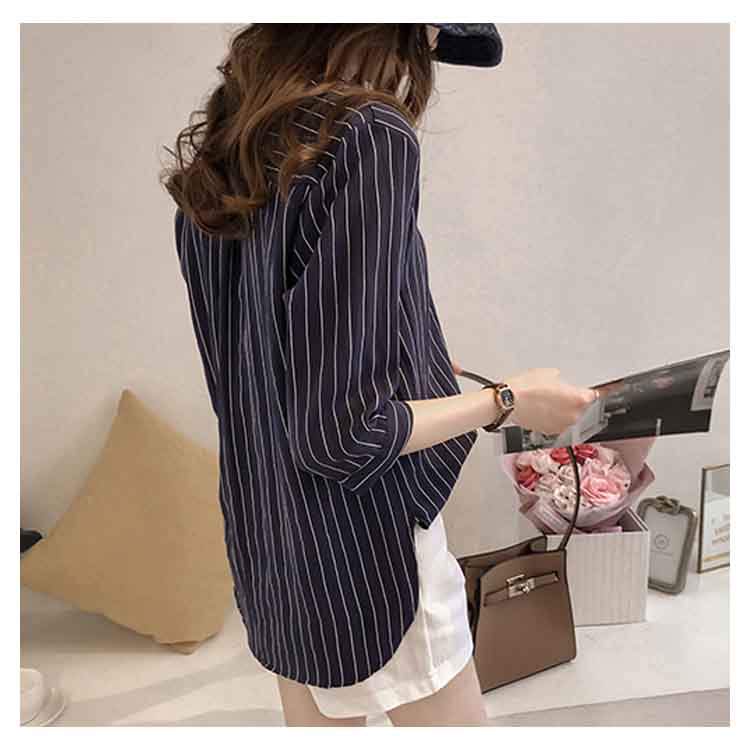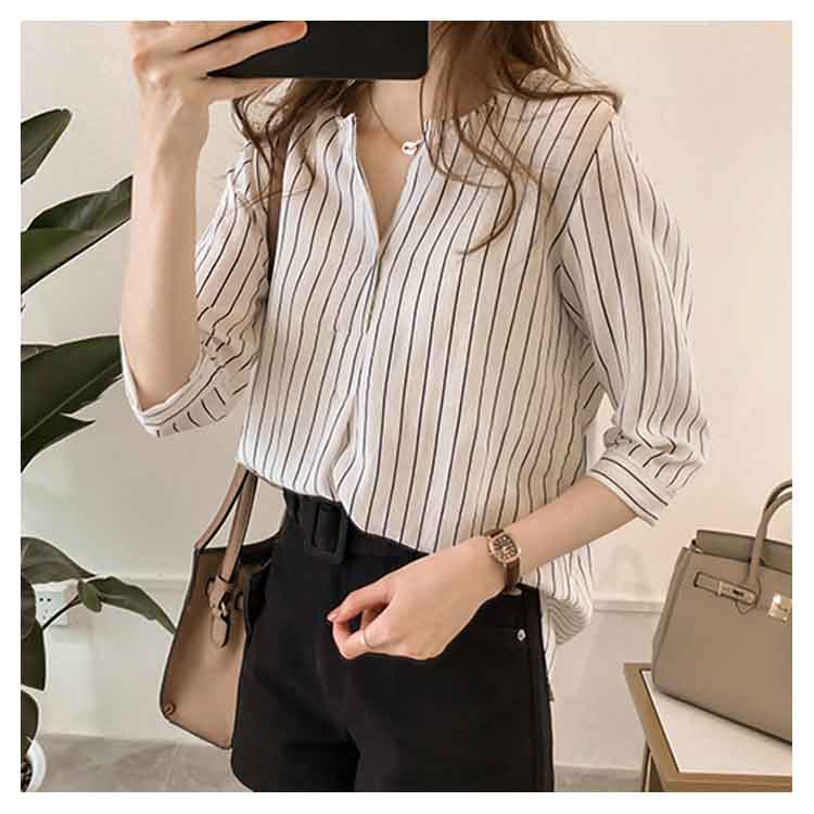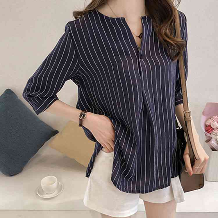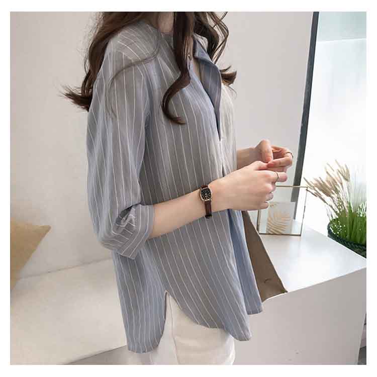 ブラウス 七分丈袖 レディース シャツ ストライプ柄 ゆったり 女性用 トップス 春 夏 薄手 着やせ 通勤 スッキリ オシャレ