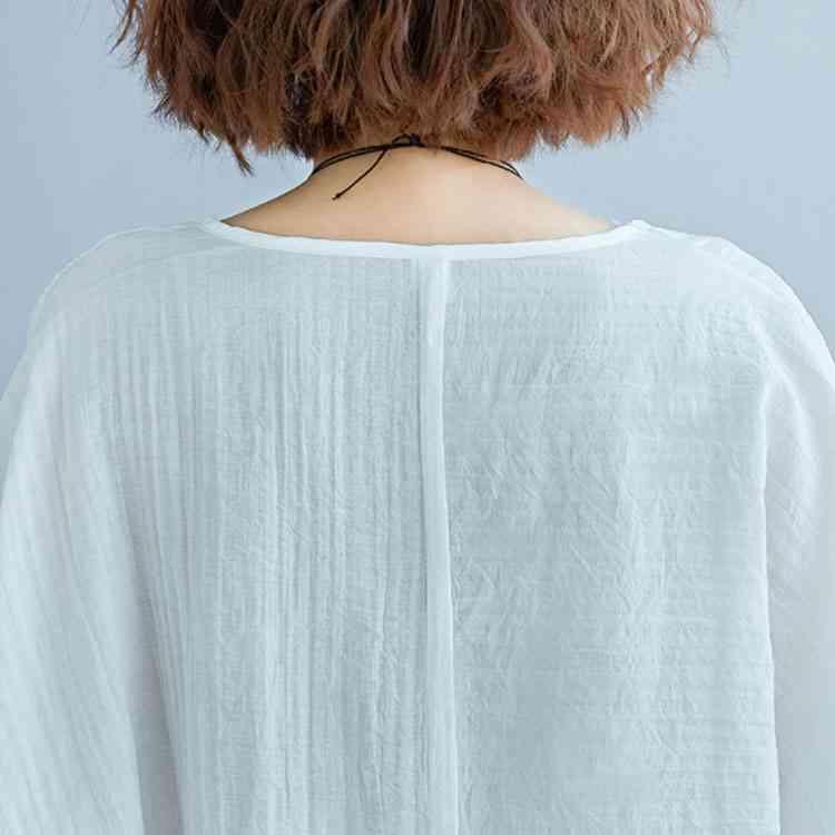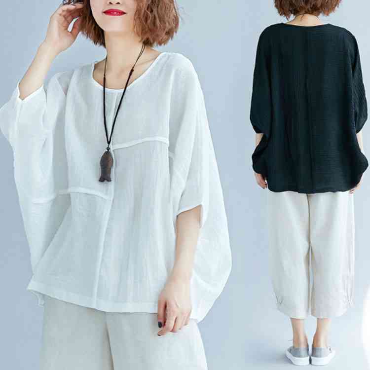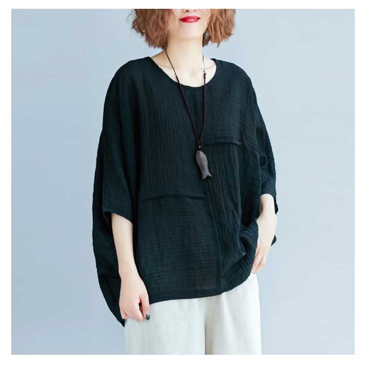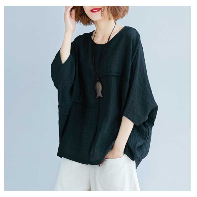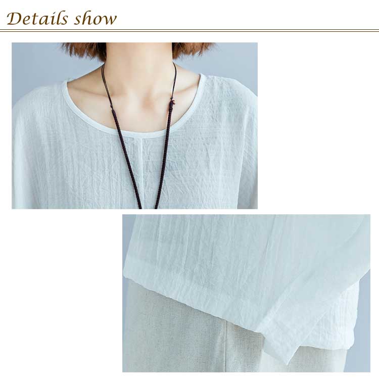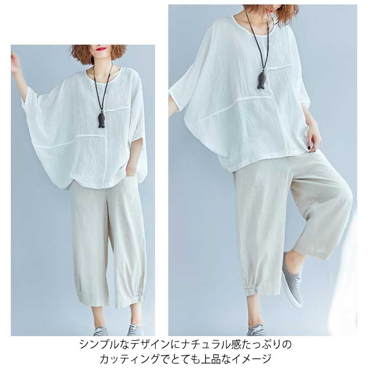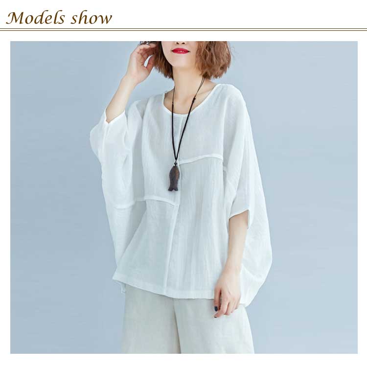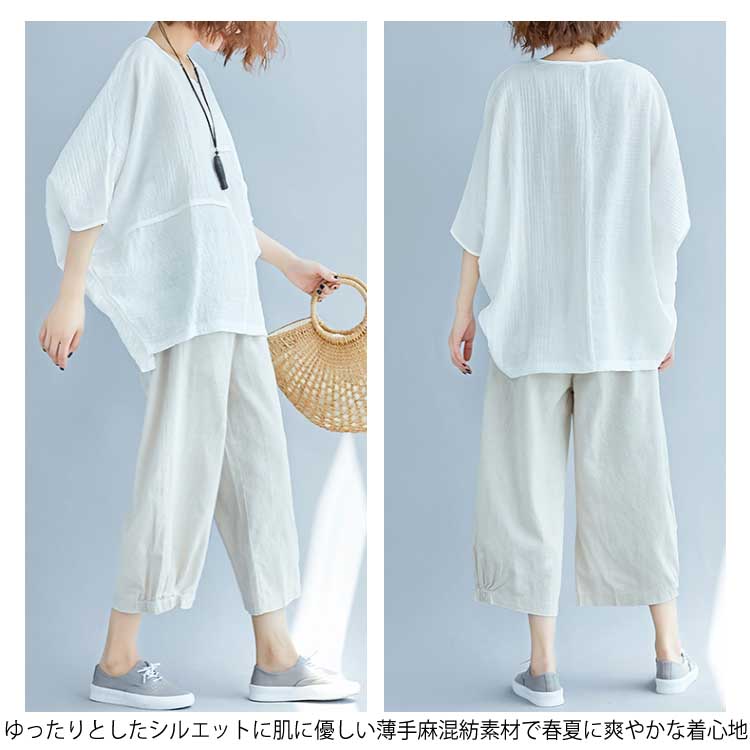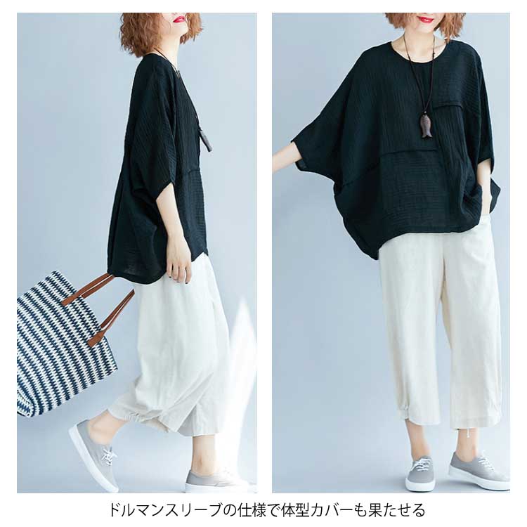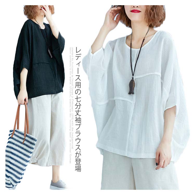 ブラウス 七分丈袖 ゆったり レディース リネン Tシャツ ドルマンスリーブ 体型カバー 女性用 薄手 トップス 爽やか 夏物 カジュアル レトロ