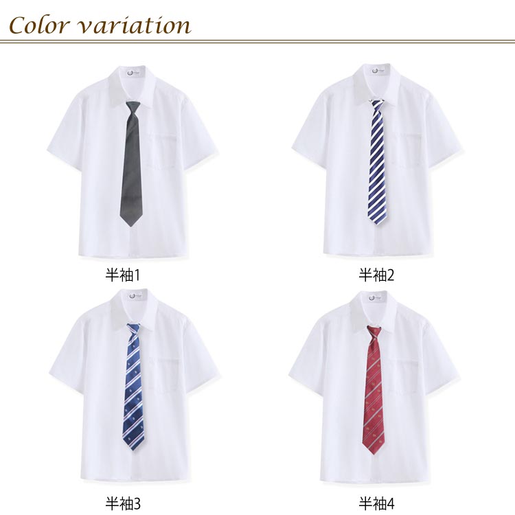 2タイプ選べる シャツ ホワイト 学生服 ブラウス 半袖 長袖 男子 高校生 スクールシャツ 形態安定 防臭 ネクタイ付き 学院風 中学生 学生用シャツ