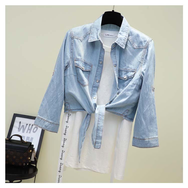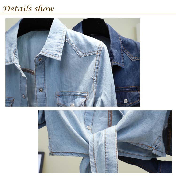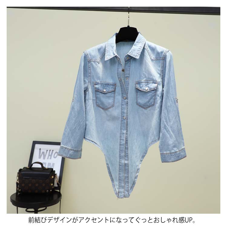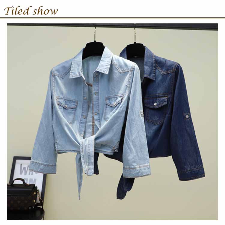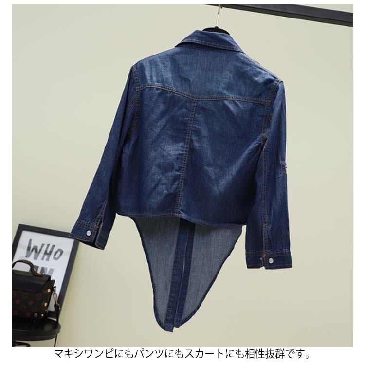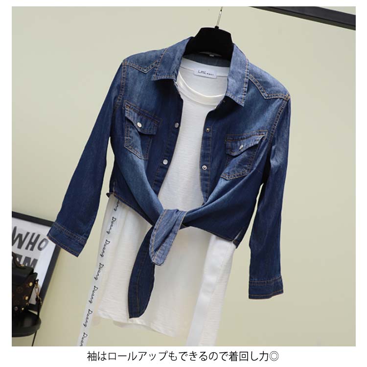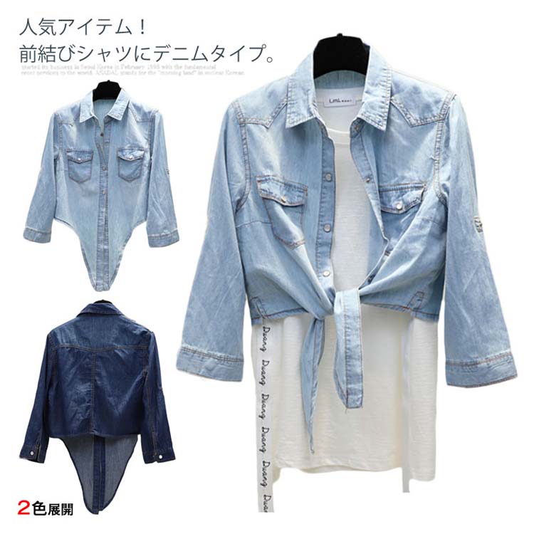 デニムシャツ レディース シャツ 前結びシャツ 長袖 前縛り 薄手 ブラウス ショート丈 トップス ロールアップ カジュアルシャツ 大人可愛い 春夏服 大きいサイズ