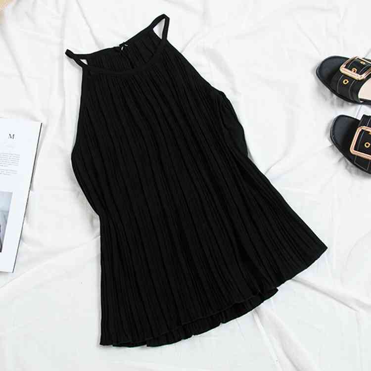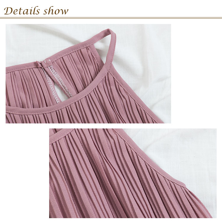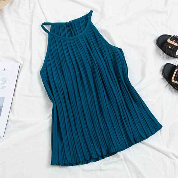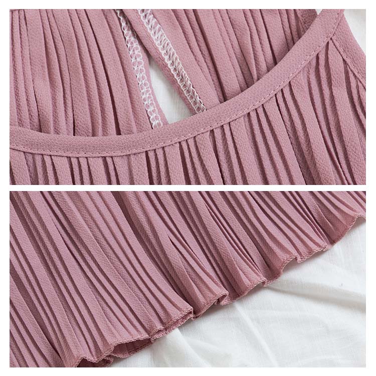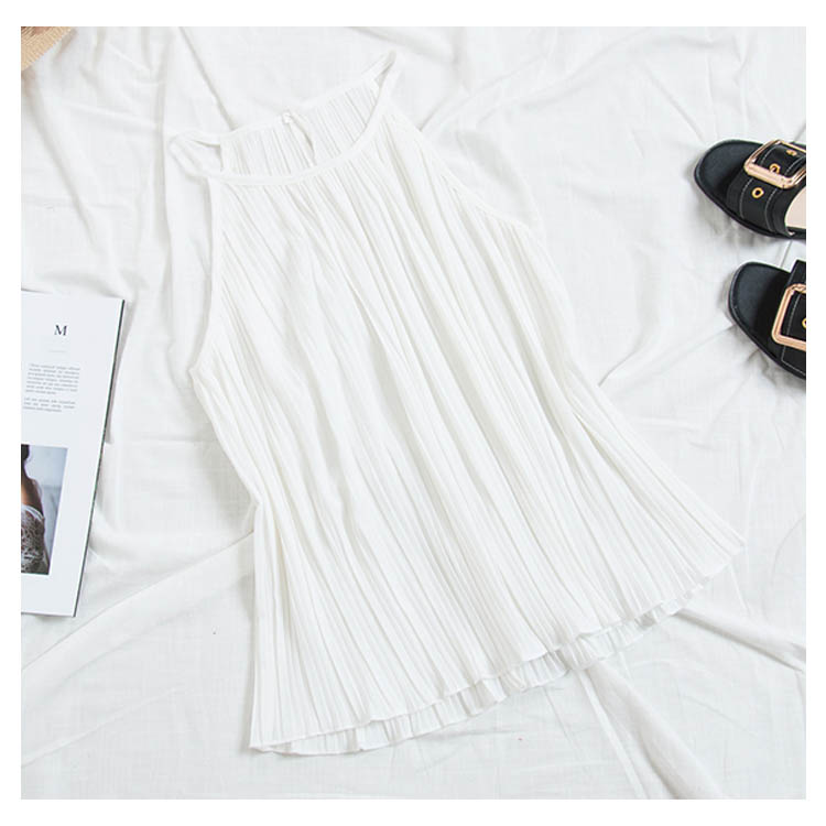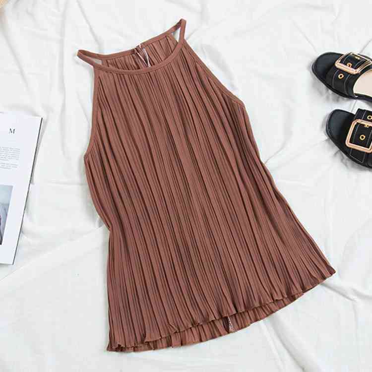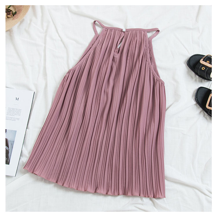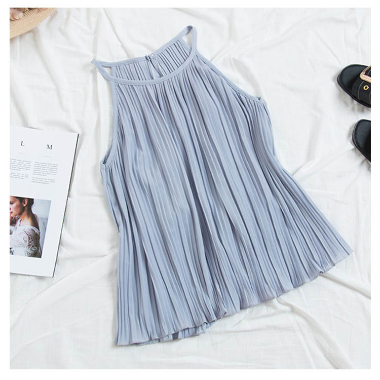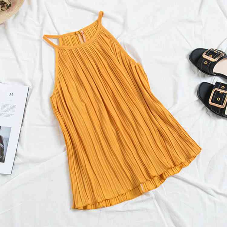 《送料無料》春色追加全8color!プリーツ加工 トップス ホルターネック ブラウス ノースリーブ プリーツブラウス キャミソール タンクトップ シフォン 夏服 シンプル 無地 おしゃれ 可愛い