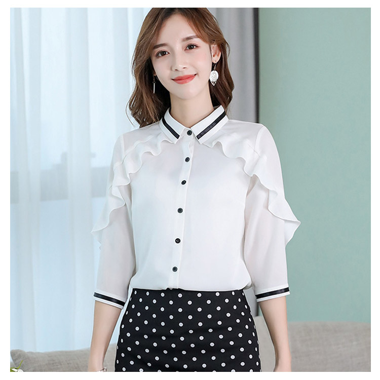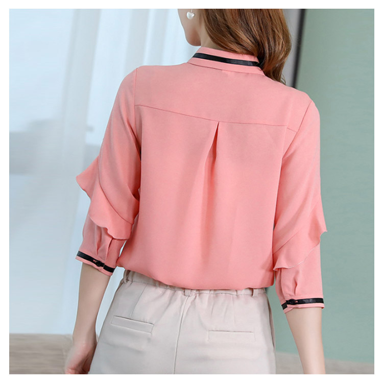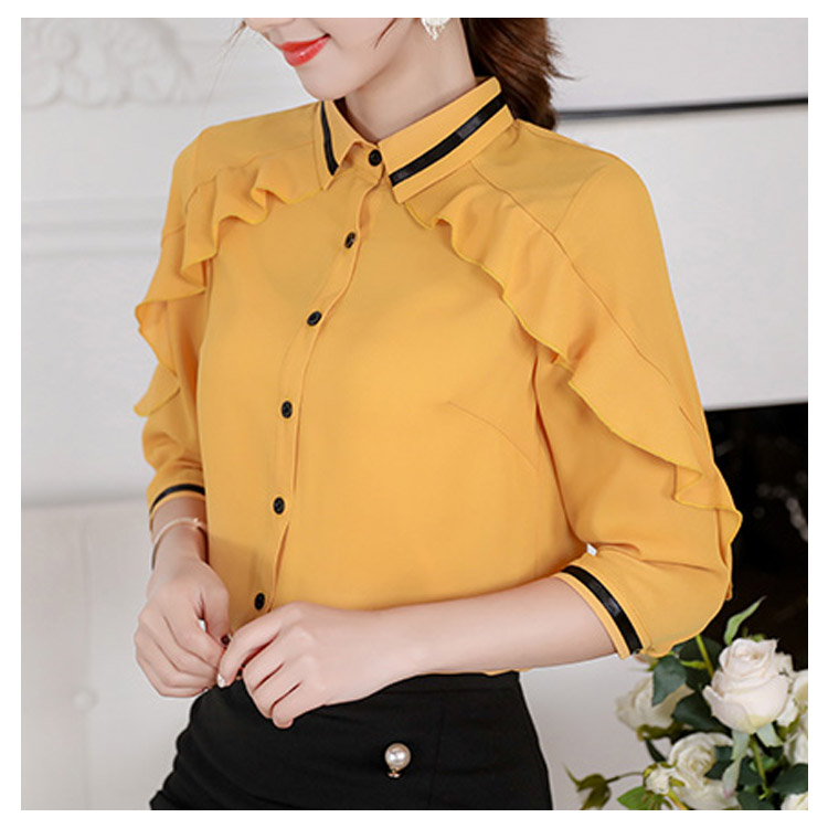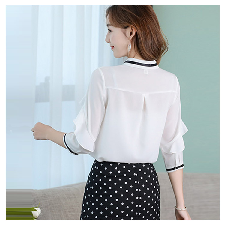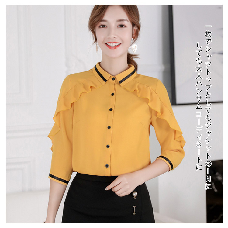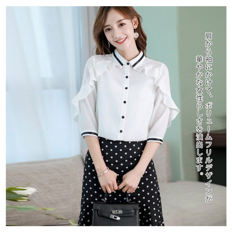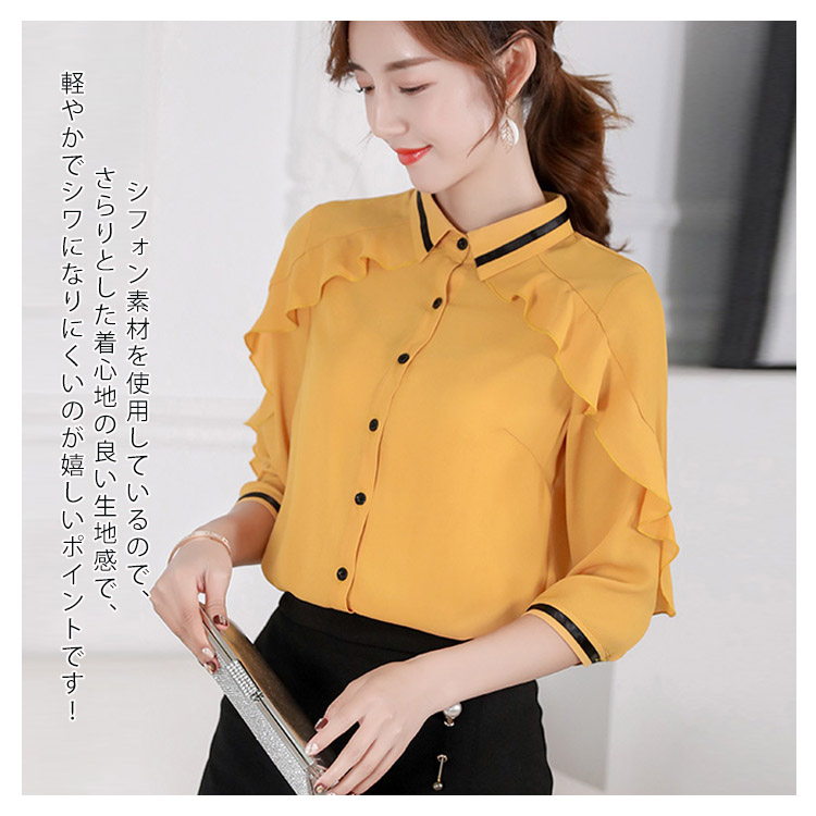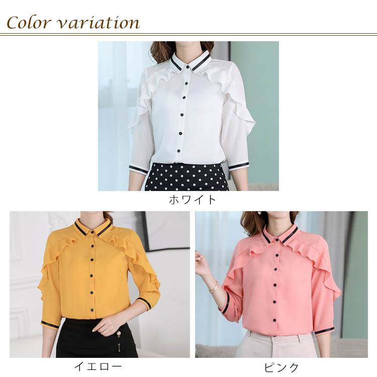 《送料無料》3色選べる!フリルシフォンブラウス シャツ ブラウス レディース 長袖 シフォントップス シフォンブラウス シフォンシャツ フリル 配色ライン 春 夏 新作