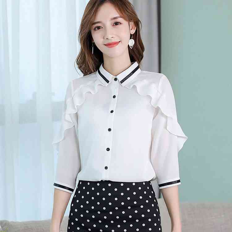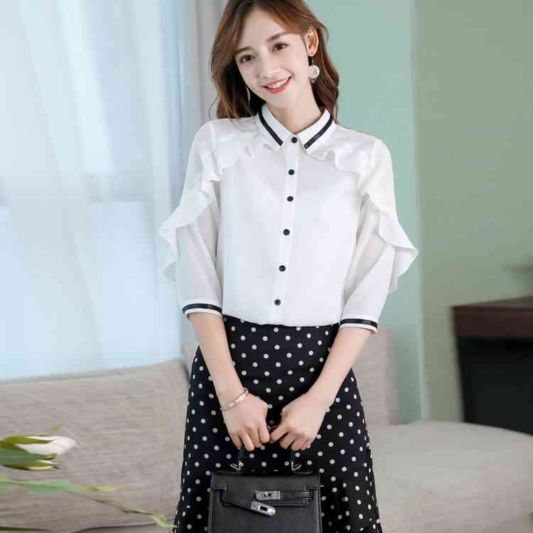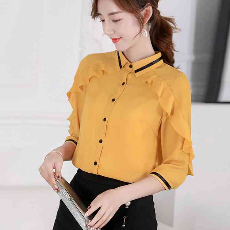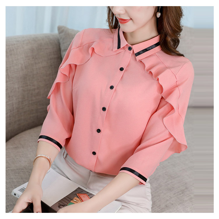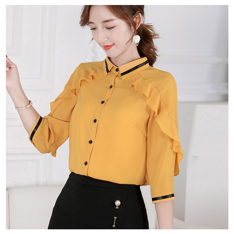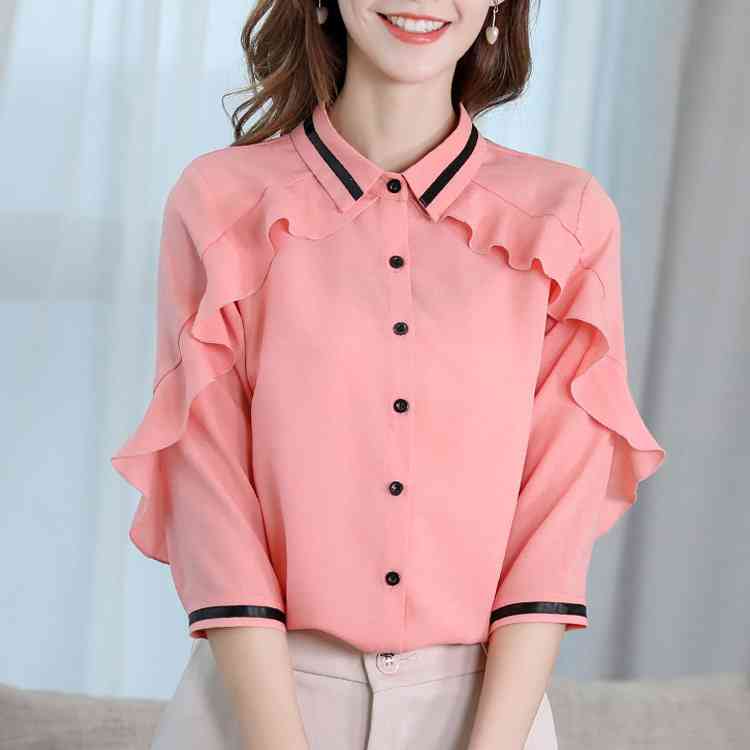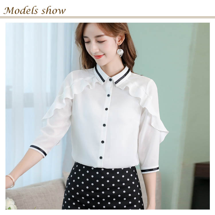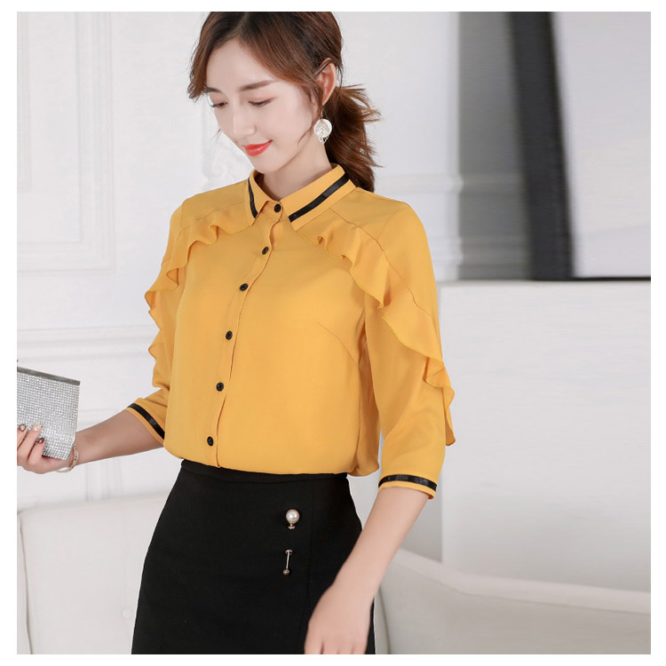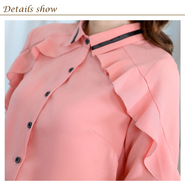《送料無料》3色選べる!フリルシフォンブラウス シャツ ブラウス レディース 長袖 シフォントップス シフォンブラウス シフォンシャツ フリル 配色ライン 春 夏 新作