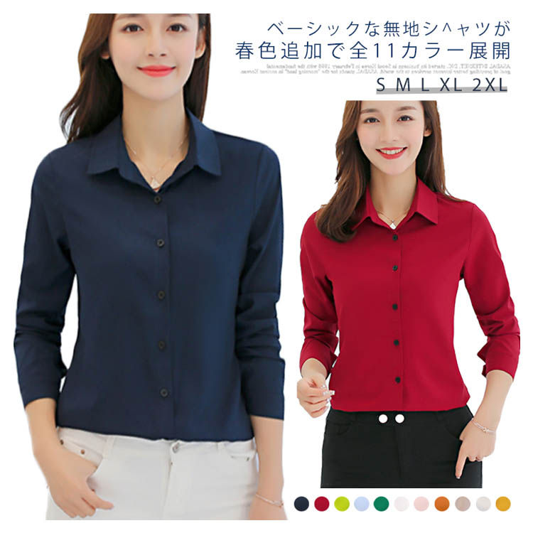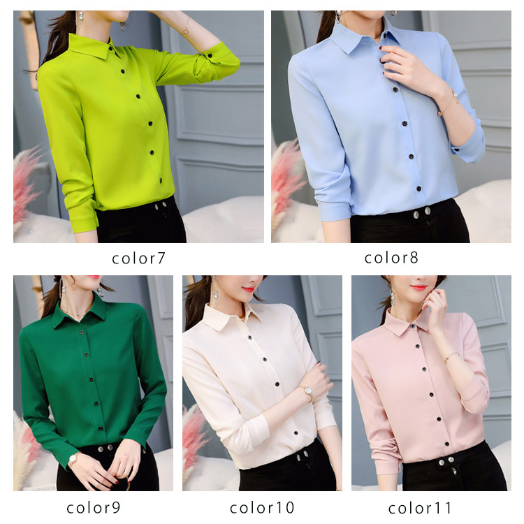 《送料無料》春色追加全11color!シャツ レディース シフォンシャツ シフォン ブラウス トップス レギュラーカラー 春シャツ シンプル 無地 通勤 オフィス おしゃれ 女性 春 夏