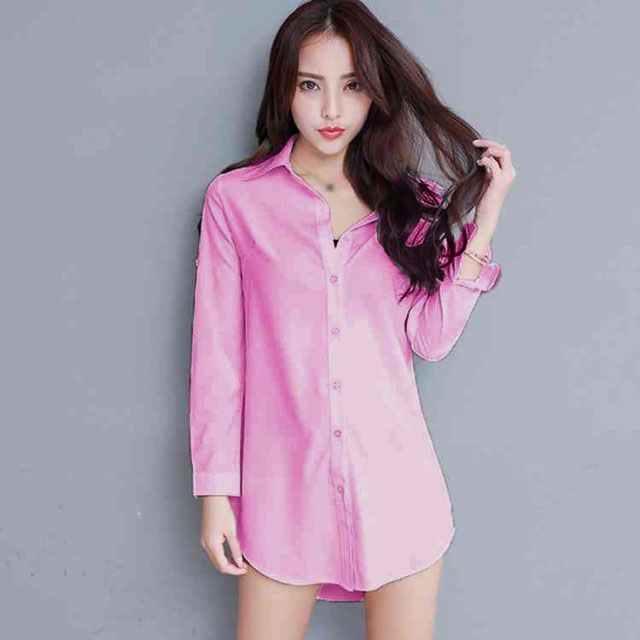 《送料無料》S-5XLサイズ!ロングシャツ シャツ ブラウス 白 レディース レディースシャツ ロング 白シャツ 春シャツ 大きサイズ ゆったり 長袖 春 夏 ベーシック 無地 ホワイト ピンク ブルー