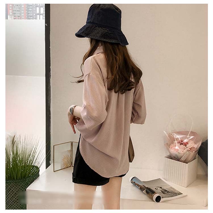| 春秋に大活躍するストライプ柄スキッパー風プルオーバーの登場です。 程度よく開いたVネックが鎖骨をきれいに見せてくれます。 全体に程よいゆとりを残したベーシックなサイジングで着回し力は抜群。 合わせるボトムを選ばず、幅広いスタイリングで役立つ今年らしいアイテムです。 お仕事スタイルにもカジュアルスタイルにも使える万能トップス! | |