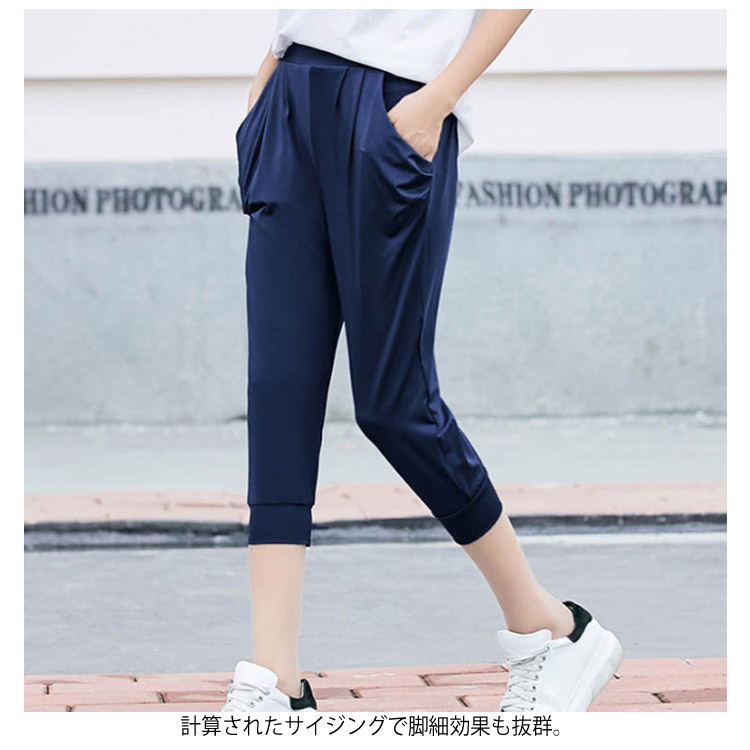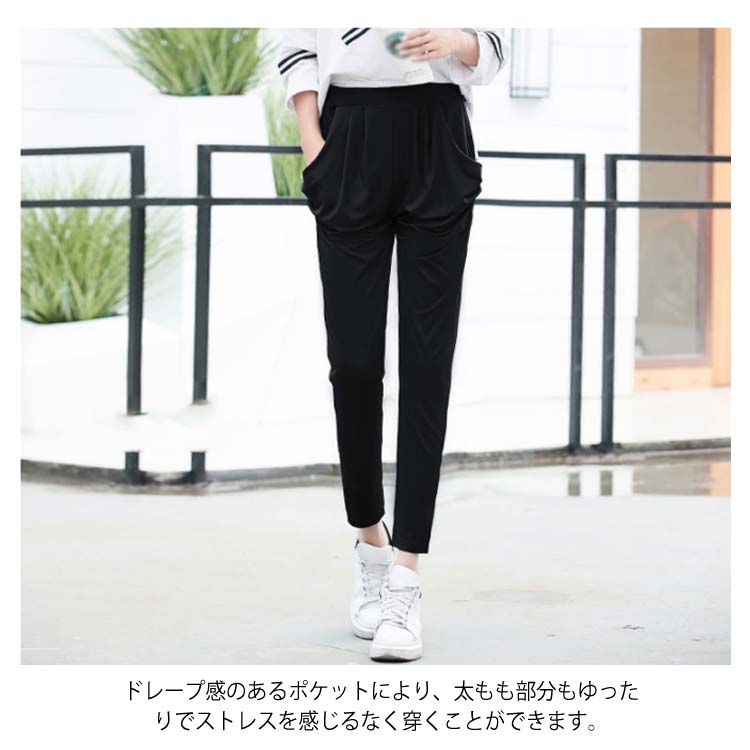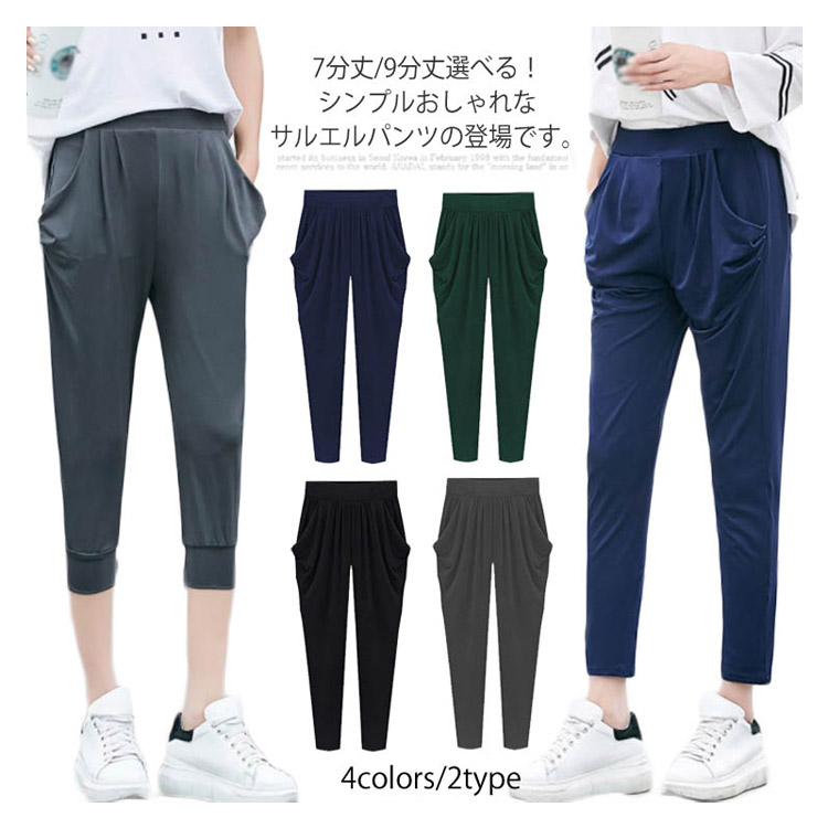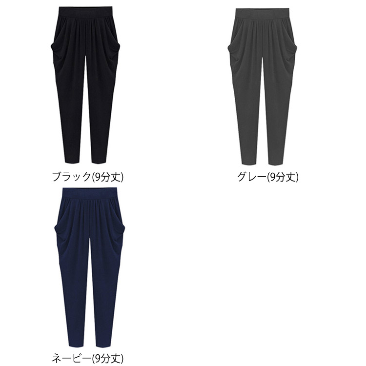送料無料 【7分丈/9分丈】M-7Lサイズ!サルエルパンツ レディース 春 夏 ボトムス ドレープ パンツ 七分丈 九分丈 リラックスパンツ ウエストゴム シンプル カジュアル 薄手 冷感 大きサイズ 無地