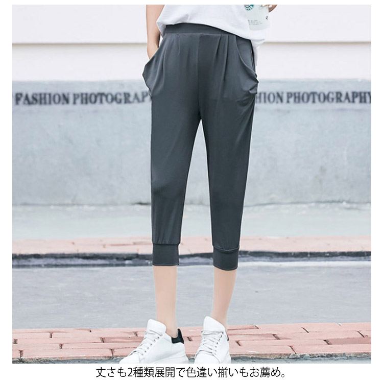 | 7分丈/9分丈選べる!シンプルおしゃれなサルエルパンツの登場です。 さらっとした素材でストレッチも効いており、運動やダンスでもってこい一品。 計算されたサイジングで脚細効果も抜群。 シンプル無地タイプでコーディネートしやすいのも嬉しい。 ドレープ感のあるポケットにより、太もも部分もゆったりでストレスを感じるなく穿くことができます。 丈さも2種類展開で色違い揃いもお薦め。 | |