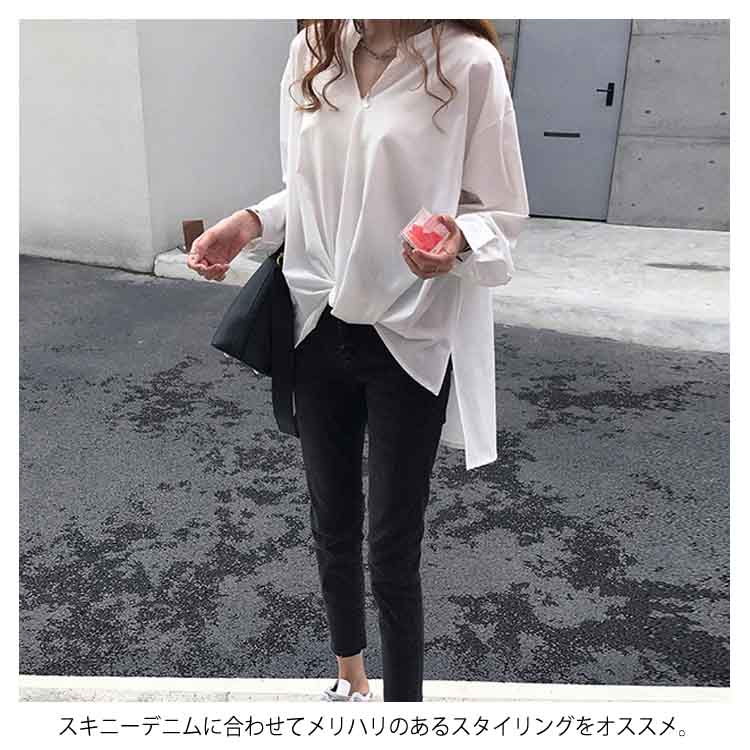 | 全3色×6サイズ!フロントタック入ったスキッパーシャツの登場。 スキッパー風のVネックで抜け感があり女性らしい雰囲気をプラス。 ボリューム感のあるロングスリーブが腕も華奢見え効果に 前短後長のイレギュラーシルエットが大人こなれ感も演出できます。 スキニーデニムに合わせてメリハリのあるスタイリングをオススメ。 主役級の存在感をもちつつも気どらず決まるスキッパーシャツを、ぜひお試しください。 | |