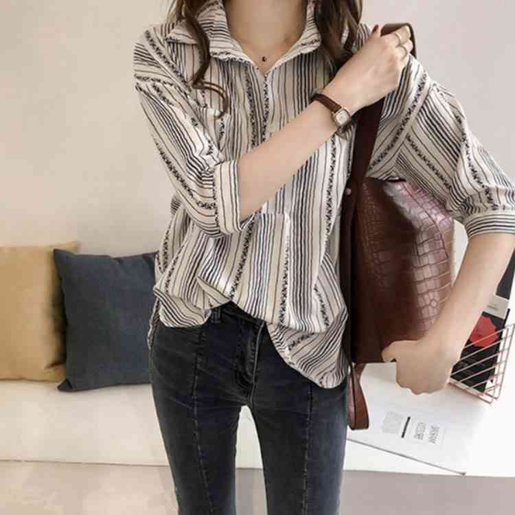 | M-4XLサイズ!プルオーバータイプのブラウスです。 胸ポケットも付きがさりげないアクセントを添えました。 ストライプ柄が縦ラインを強調してスタイルUP効果も バックスタイルの丈感はヒップも隠れます。 程度良い7分袖なので厚くなる時期にも着まわせる。 ボトムスも問わず、どんなitemとも合わせやすいitemです。 | |