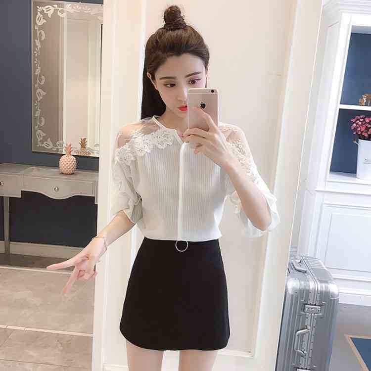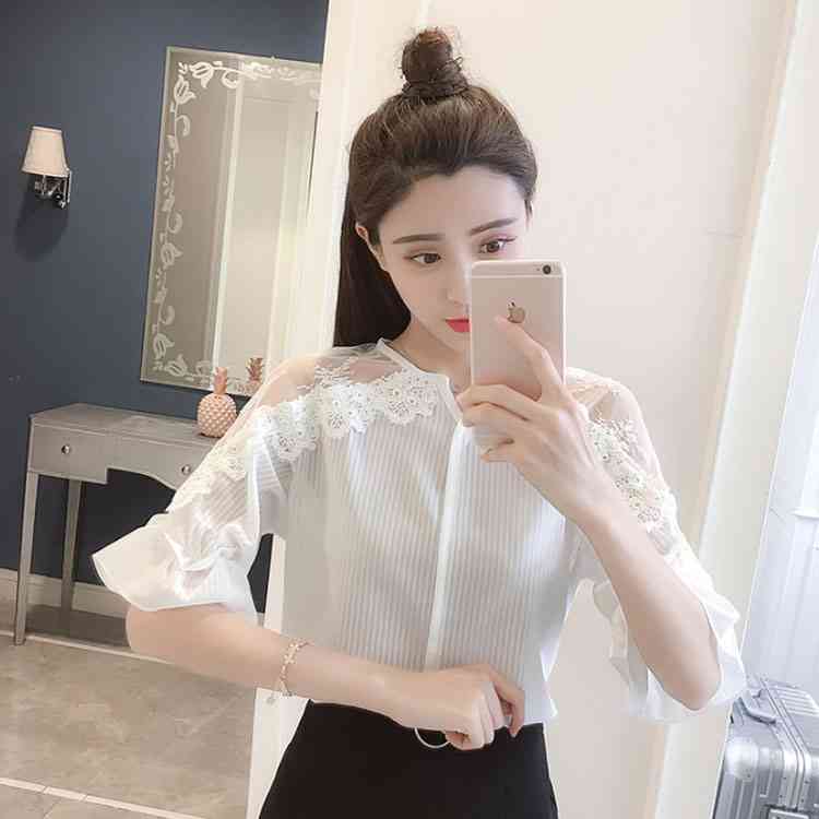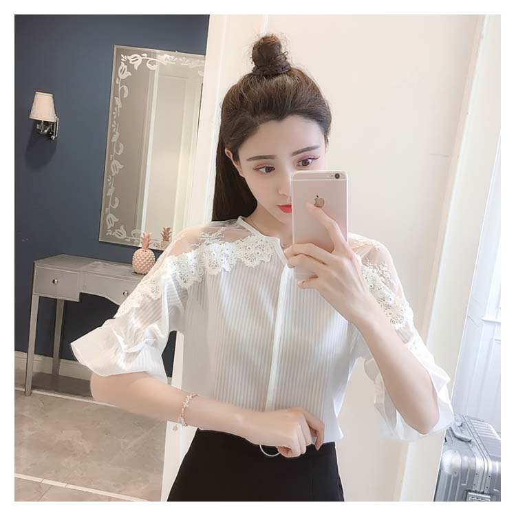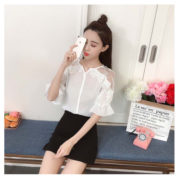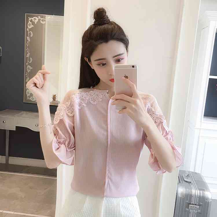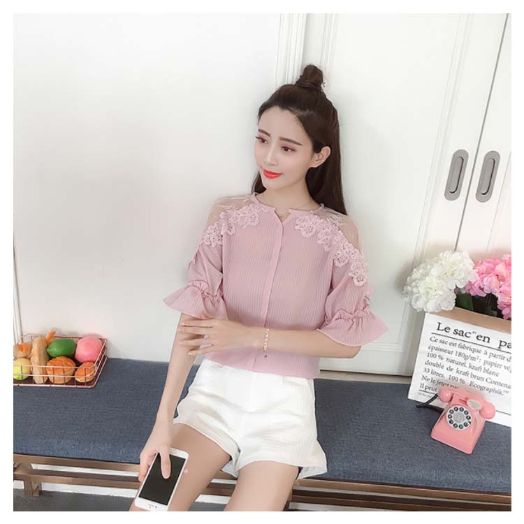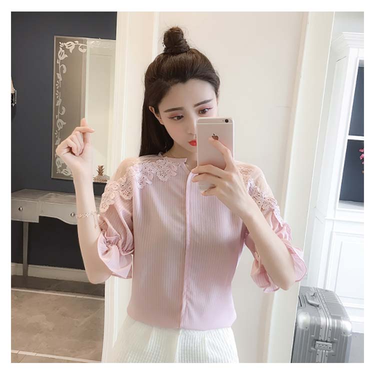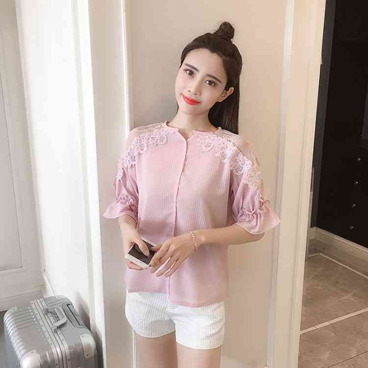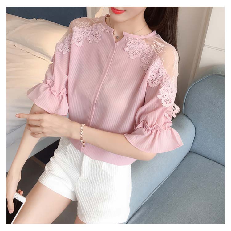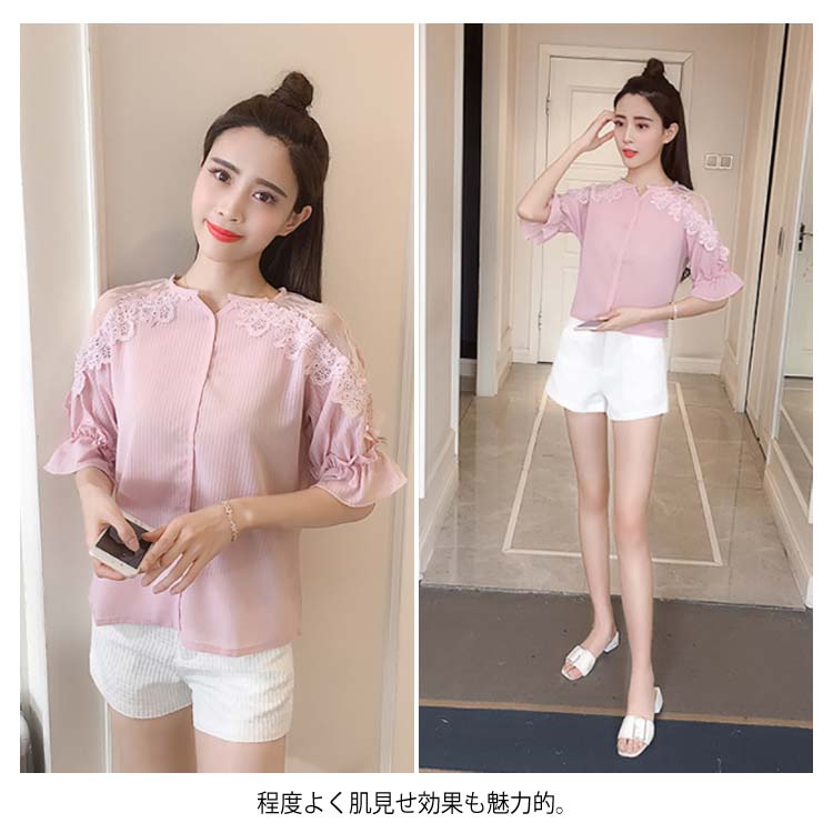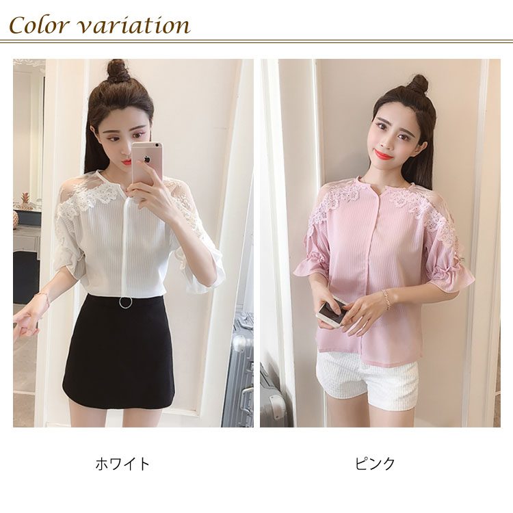 XS-2XLサイズ!ブラウス レディース トップス シャツ カジュアル レース 透け感 大人 可愛い ホワイト ピンク 春 夏
