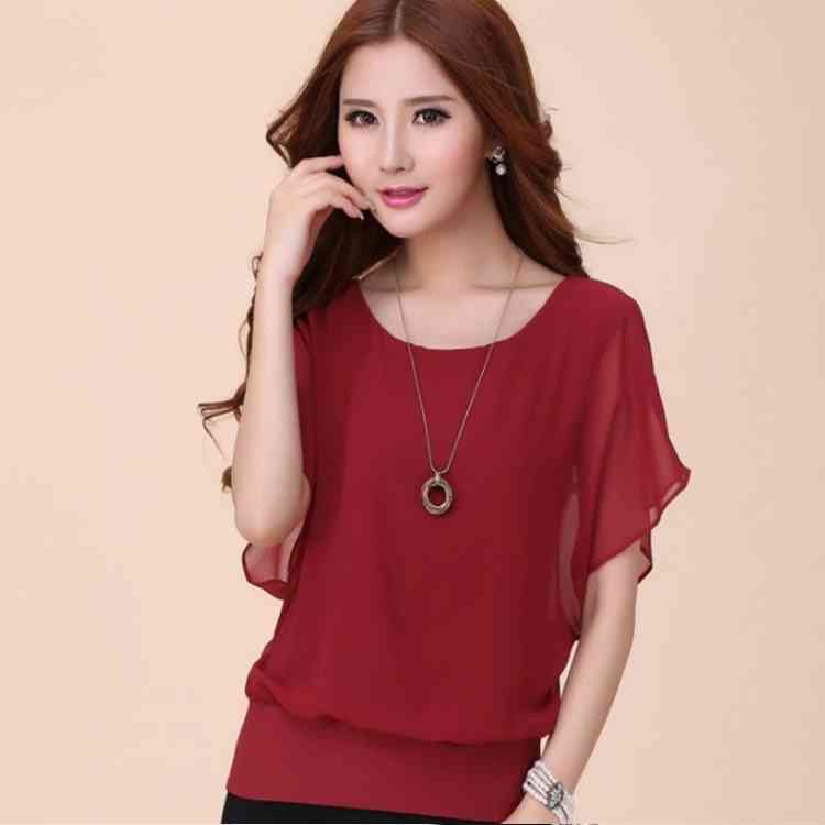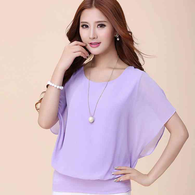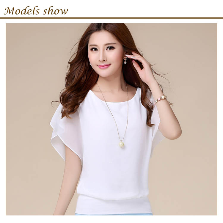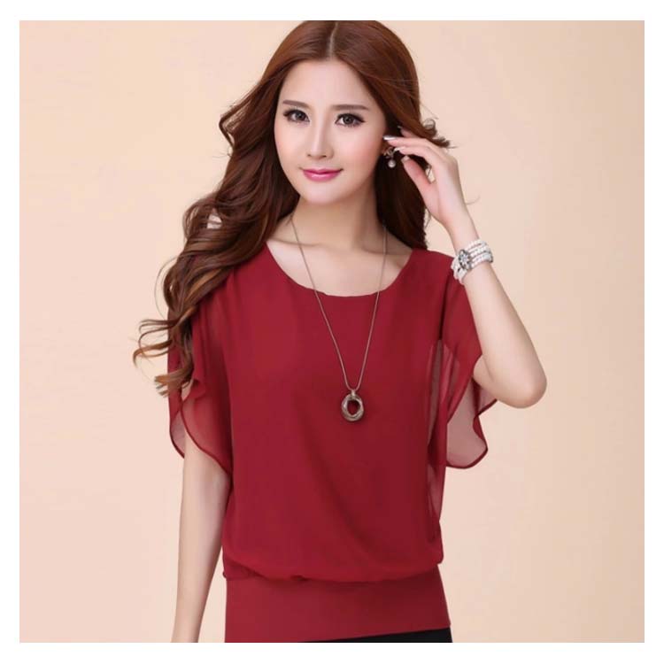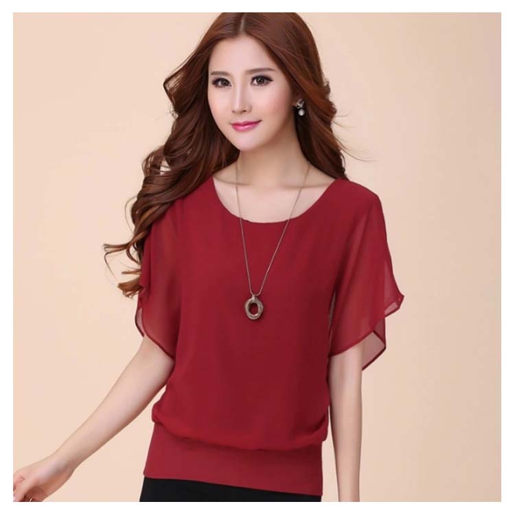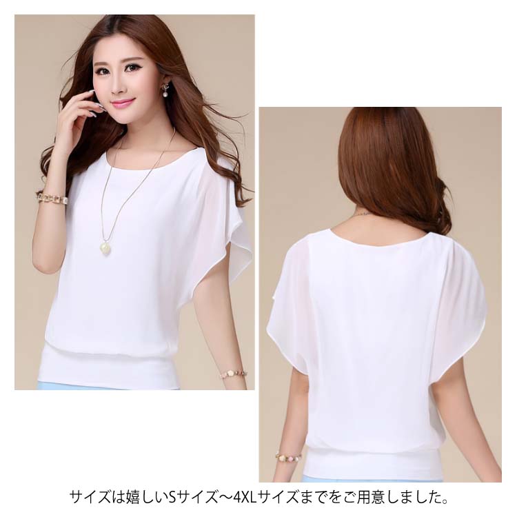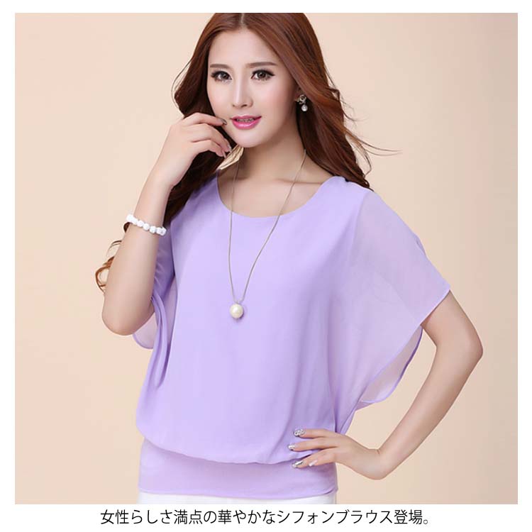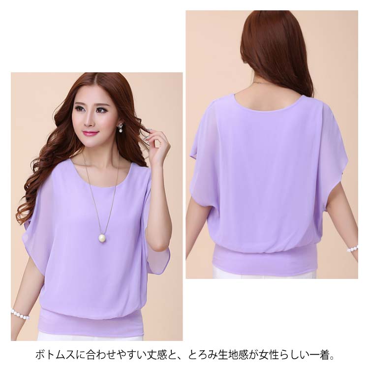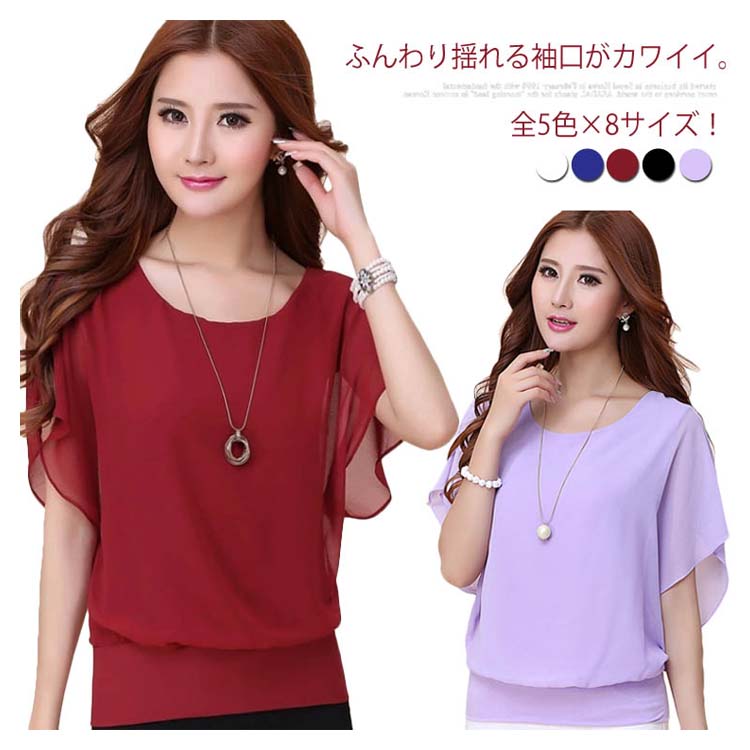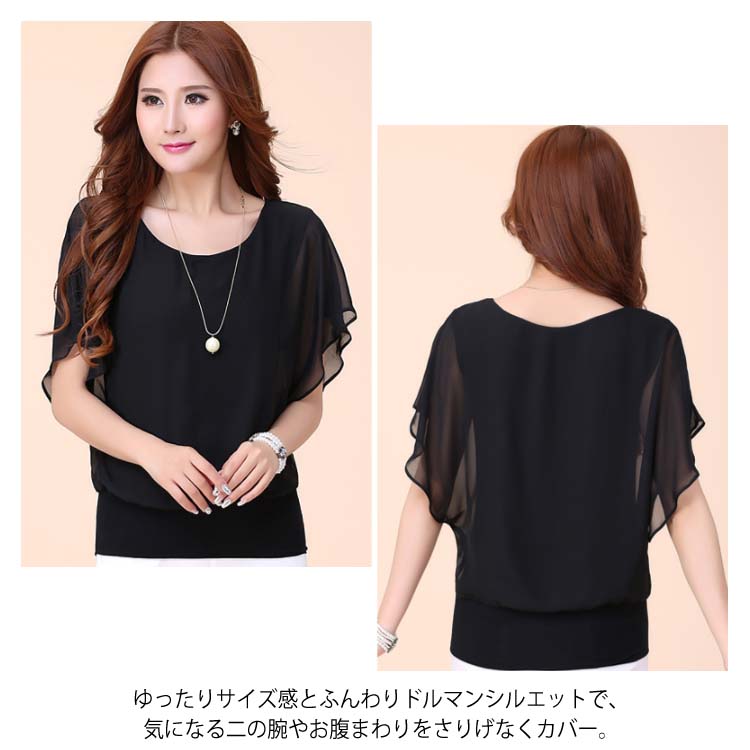 全5色×8サイズ!ブラウス レディース トップス ラウンドネック シフォントップス 春夏 半袖 ドルマン とろみ チュニック 体型カバー 無地 春 夏 大きサイズ