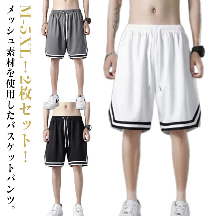 2枚セット!バスケパンツ メンズ ジュニア ショートパンツ ハーフパンツ バスパン 短パン スポーツ ランニングパンツ トレーニング バスパン 運動着 大きいサイズ 夏 運動会 体育祭 筋トレ ウエストゴム スポーツウェア ルームウェア 送料無料