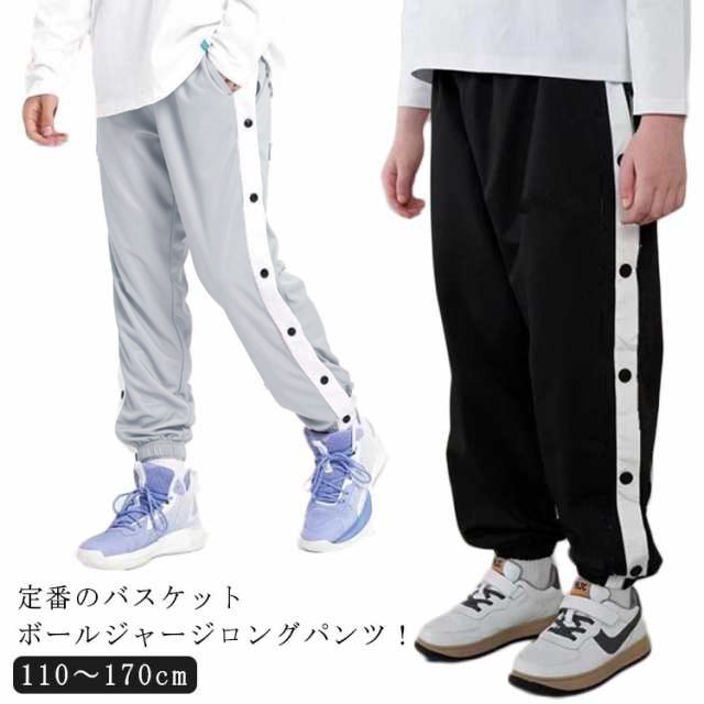 バスケットボールパンツ キッズ ジュニア 裾ボタン ジャージパンツ バスケパンツ バスケットボール 練習用パンツ サイドライン スナップボタン 長ズボン ロングパンツ ジャージ 下 男の子 女の子