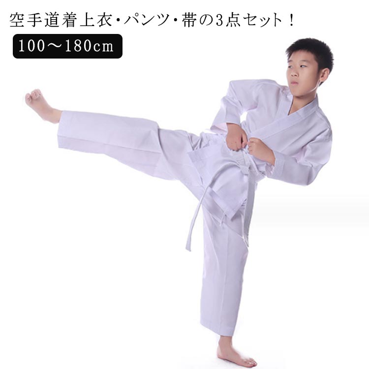空手着 空手衣 上下白帯セット 3点セット 上衣・ズボン・帯 上下セット 柔道衣 柔道着 道着 合気道 合気道着 格闘技 道衣 武道 練習 道場 子供 大人 ジュニア 初心者 入門者向け 熟練者 練習用 体育 授業用 学校指定 部活 ホワイト 中学生 高校生 高等学校 軽い 送料無料