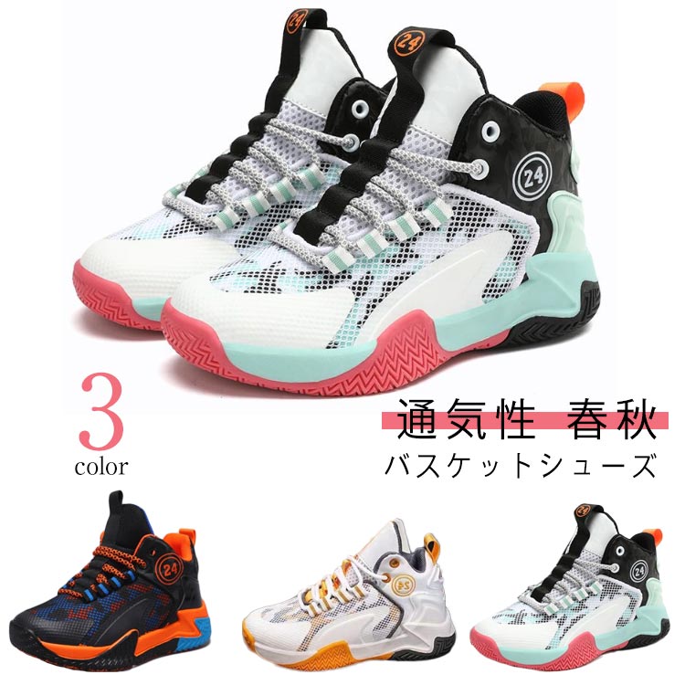 送料無料 バスケットシューズ キッズ ハイカット バッシュ ジュニアバスケットシューズ 紐 こども 運動靴 痛くない 歩きやすい 男の子 ジュニア 小学生 中学生 春 秋 メッシュ 通気性 快適 ランニング トレーニング