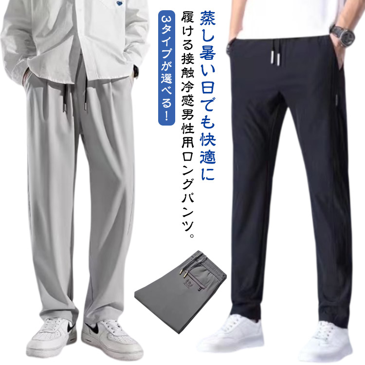 3タイプ!アイスシルク パンツ 接触冷感 ロングパンツ メンズ イージーパンツ 冷感パンツ 薄手 ゴルフパンツ ウエストゴム ストレッチパンツ 伸縮 長ズボン 通気 速乾 スポーツパンツ 大きいサイズ 夏 涼しい サマーパンツ チノパン カジュアル 黒 グレー 送料無料
