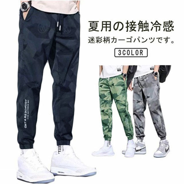 接触冷感 カーゴパンツ メンズ 迷彩柄 速乾 ジョガーパンツ ロングパンツ 冷感パンツ 長ズボン ミリタリー ボトムス カジュアル スポーツウェア 涼感 ひんやり 通気 作業ズボン サルエル カモフラージュ柄 アイスシルク ストリート系 ダンス 大きいサイズ 送料無料 M-5XL