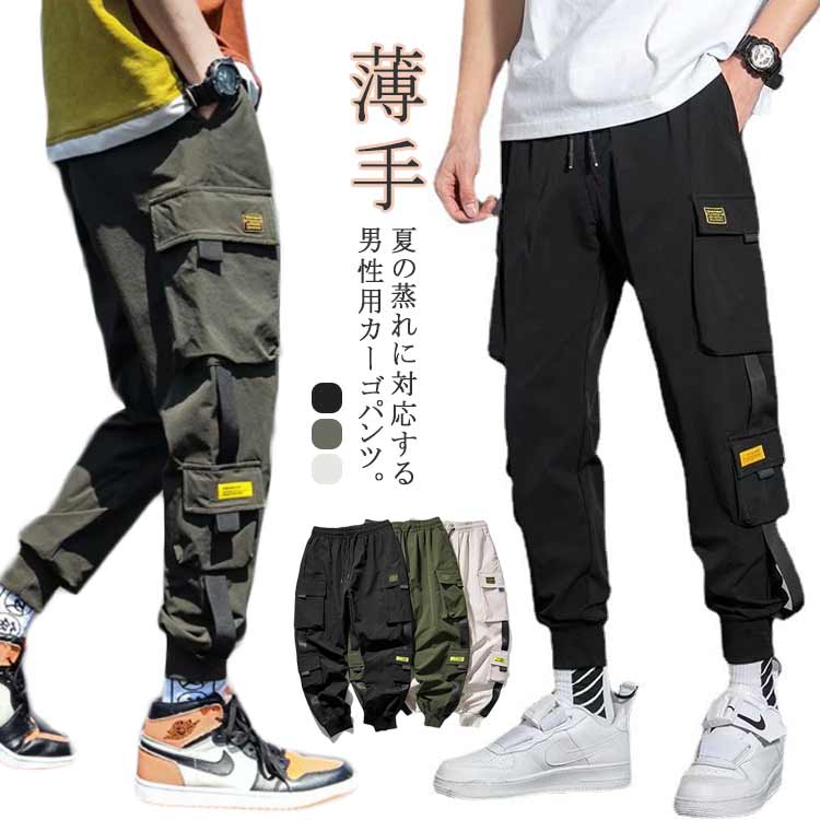 カーゴパンツ メンズ 夏 薄手 接触冷感 ひんやり 涼しい 冷感パンツ ロングパンツ 6ポケット ジョガーパンツ イージーパンツ カジュアルパンツ スリム 作業着 美脚 ウエストゴム カジュアル 無地 おしゃれ 大きいサイズ 送料無料 S-5XL